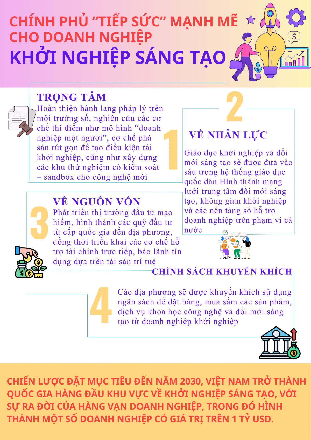 Mục tiêu của Chiến lược là hình thành và lan tỏa sâu rộng làn sóng khởi nghiệp sáng tạo dựa trên nền tảng khoa học, công nghệ và chuyển đổi số trong toàn xã hội. Đưa khởi nghiệp sáng tạo trở thành một động lực quan trọng của tăng trưởng kinh tế - xã hội, nâng cao đời sống nhân dân, thúc đẩy công nghiệp hóa, hiện đại hóa, tăng cường năng lực tự chủ quốc gia, phát triển đất nước nhanh và bền vững. Đưa Việt Nam trở thành quốc gia hàng đầu về khởi nghiệp sáng tạo trong khu vực.