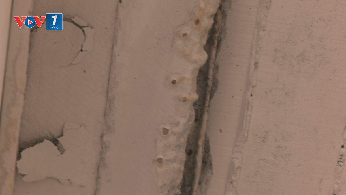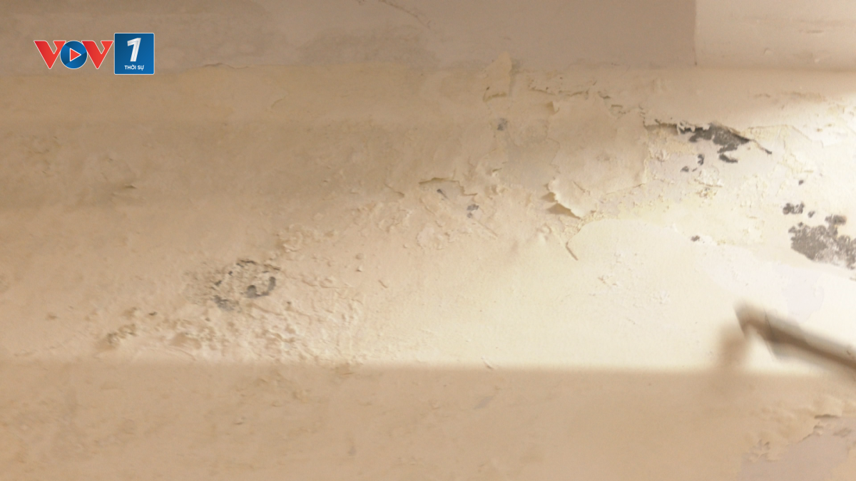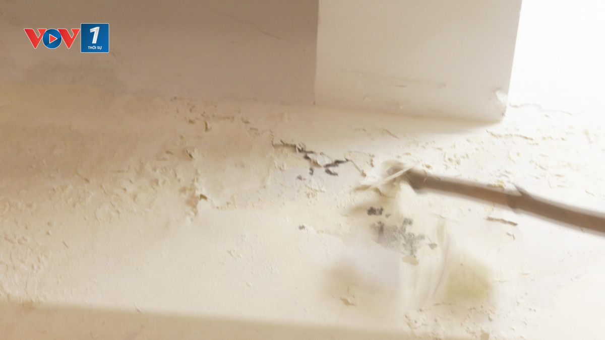 Phóng viên gõ nhẹ tay lên tường — từng mảng vữa bong rơi, vỡ vụn. “Quý vị có tin được không, đây là bức tường vừa được sơn sửa lại chưa đầy 1 năm?”. Câu trả lời, đáng tiếc, là quá dễ tin khi tận mắt chứng kiến.