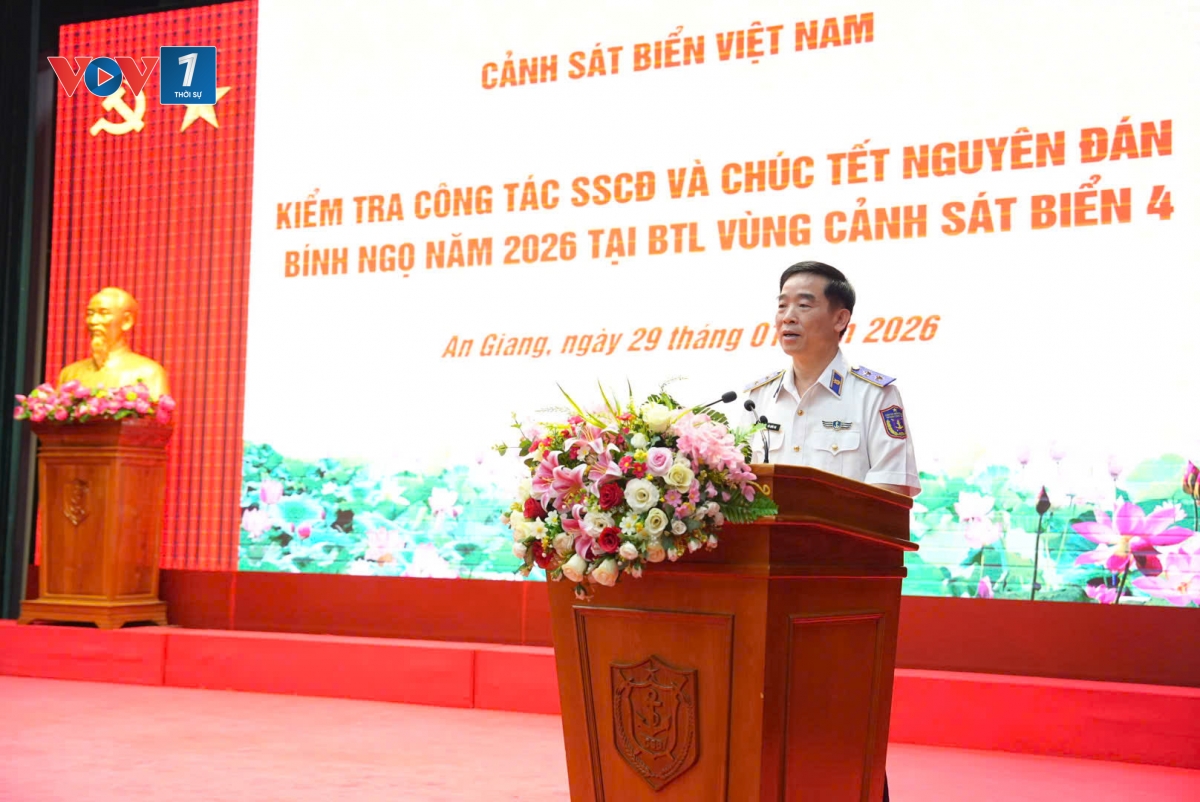 Trước thềm Tết Nguyên đán Bính Ngọ 2026, Đoàn công tác Cảnh sát biển Việt Nam đã đến thăm, chúc Tết cán bộ, chiến sĩ Bộ Tư lệnh Vùng Cảnh sát biển 4, đồng thời kiểm tra công tác sẵn sàng chiến đấu, chuẩn bị lực lượng, phương tiện cho các đợt tuần tra cao điểm trên biển.