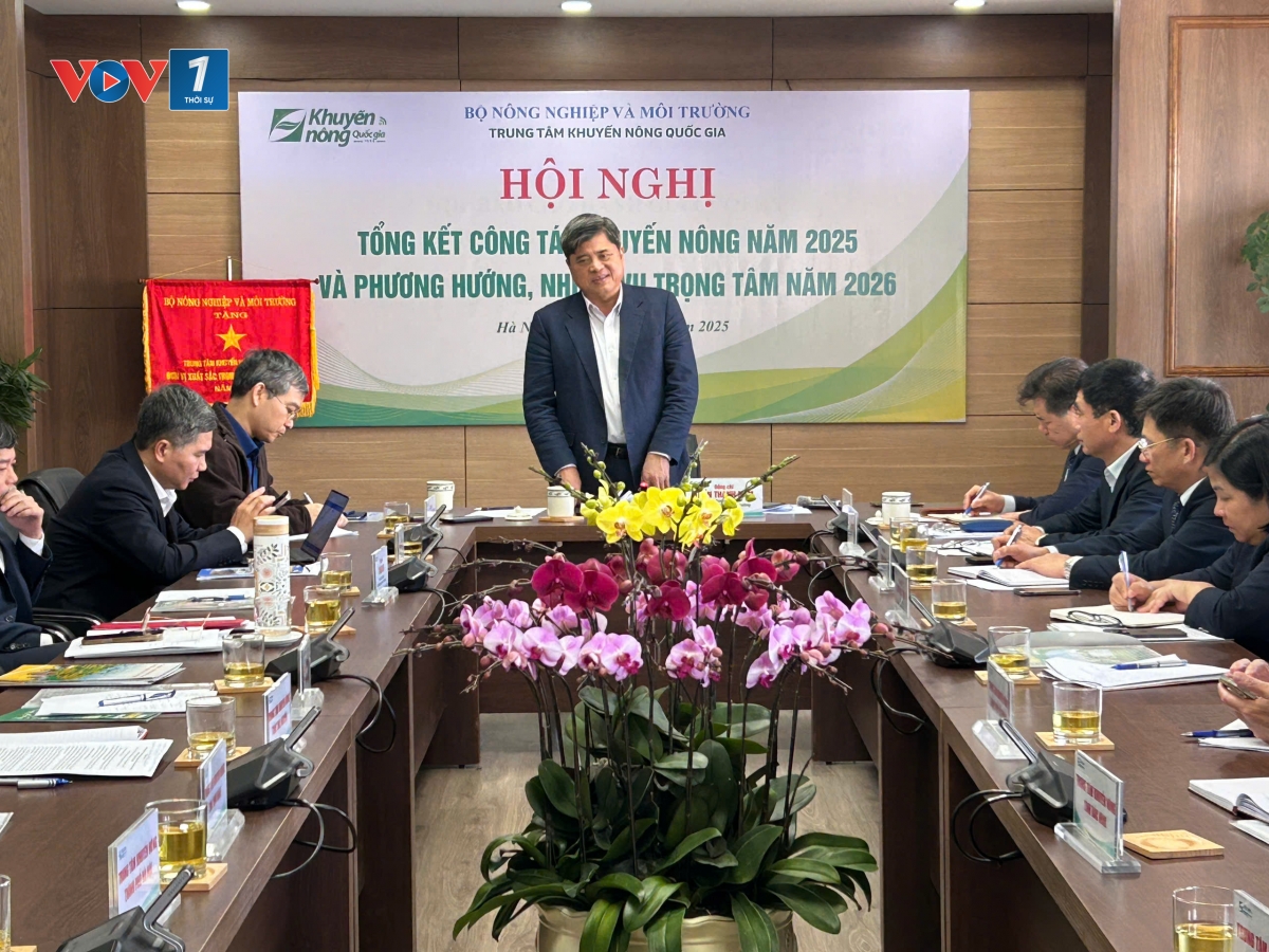 Sáng 26/12/2025, tại Hà Nội, Trung tâm Khuyến nông Quốc gia (Bộ Nông nghiệp và Môi trường) tổ chức Hội nghị tổng kết công tác khuyến nông năm 2025 và phương hướng, nhiệm vụ trọng tâm năm 2026. Hội nghị nhằm đánh giá toàn diện kết quả triển khai các chương trình khuyến nông trong năm qua, trao đổi những khó khăn, vướng mắc từ thực tiễn địa phương và thống nhất định hướng đổi mới hoạt động khuyến nông đáp ứng yêu cầu phát triển nông nghiệp hiện đại, bền vững trong giai đoạn mới.