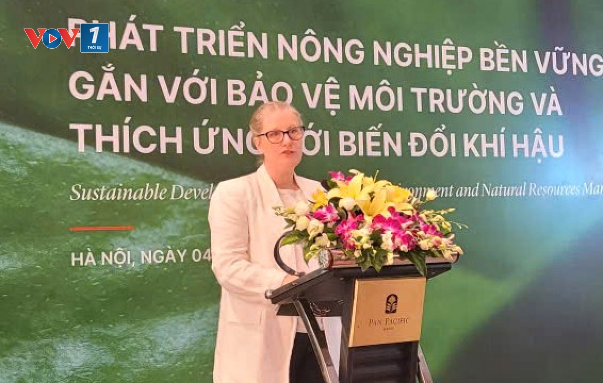 Đánh giá cao nỗ lực thúc đẩy kinh tế tuần hoàn và tăng trưởng bền vững trong lĩnh vực nông nghiệp, tài nguyên và môi trường của Việt Nam, bà Mô-ni-ca Phai-lây-sờn (Monica Fylayson), Tham tán nông nghiệp, Đại sứ quán Ốt – xtrây-li-a tại Việt Nam chia sẻ: “Trên toàn cầu, Chính phủ các nước đang gặp phải các thách thức trong quản lý rủi ro về biến đổi khí hậu, tài nguyên môi trường đồng thời phải đảm bảo năng lực sản suất để hỗ trợ dân số ngày càng tăng. Điều này đòi hỏi phải có sự hợp tác giữa các quốc gia. Chúng tôi cam kết làm việc với các quốc gia có cùng mong muốn và mục tiêu chung để có thể giải quyết những vấn đề đặt ra trong phát triển nông nghiệp bền vững gắn với bảo vệ môi trường và thích ứng với biến đổi khí hậu”.