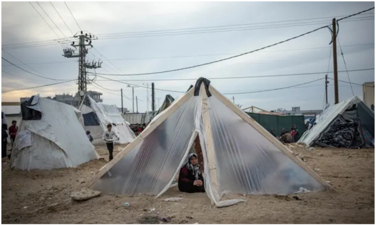 Hôm nay, trong ngày chủ nhật cuối cùng của năm 2025, những chiếc lều ở Khan Younis, Gaza, phấp phới trong gió mạnh hầu như không che chở được cho nhiều người Palestine đang chật vật tìm cách giữ chặt những tấm bạt mỏng manh để bảo vệ họ khỏi cái lạnh.