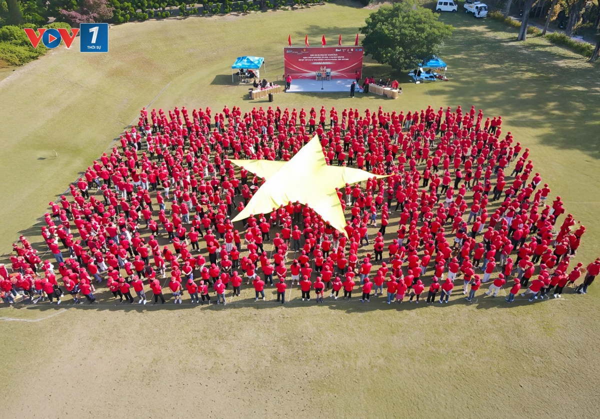 Điểm nhấn xúc động nhất của Ngày hội là khoảnh khắc hơn 1.000 người Việt đồng loạt tiến vào đội hình, tạo thành Lá cờ đỏ sao vàng gồm ba nhóm lớn với 15 khối đại diện cho 15 thành phần cộng đồng, cũng là hành trình 15 năm của Tổng lãnh sự quán Việt Nam tại Fukuoka, bằng những trái tim cùng chung một nhịp đập, hướng về Tổ quốc thân yêu. Ông Nguyễn Duy Anh - Chủ tịch Hội Người Việt Nam tại Fukuoka bày tỏ niềm xúc động khi chứng kiến sự hội tụ chưa từng có của cộng đồng người Việt tại Kyushu: “Từ bốn phương trời, chúng tôi tập trung tại đây để xếp lá cờ Tổ quốc và mang trong mình một niềm tin, một niềm hãnh diện, tự hào dân tộc Việt Nam. Chúng tôi cùng nhủ với nhau rằng hãy cùng nhau cố gắng đoàn kết để cùng nhau xây dựng hình ảnh người Việt Nam ngày càng phát triển và hội nhập”