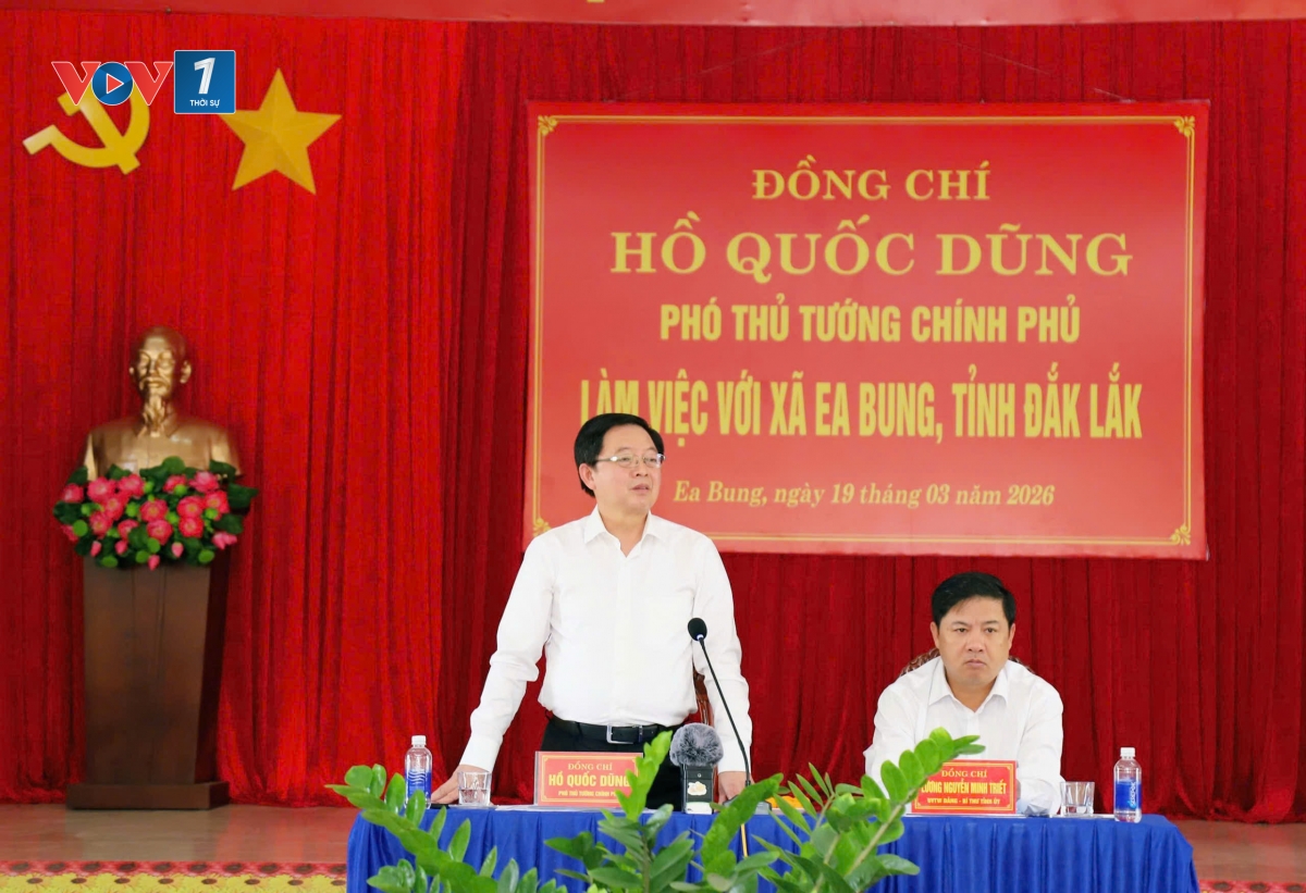 Trong khuôn khổ chương trình làm việc tại tỉnh Đắk Lắk, sáng nay, 19/3, Ủy viên Trung ương Đảng, Phó Thủ tướng Chính phủ Hồ Quốc Dũng đã làm việc với xã Ea Bung. Phó Thủ tướng ghi nhận nỗ lực của địa phương sau sáp nhập, đồng thời yêu cầu tháo gỡ các điểm nghẽn về hạ tầng, nguồn lực để thúc đẩy phát triển vùng biên.