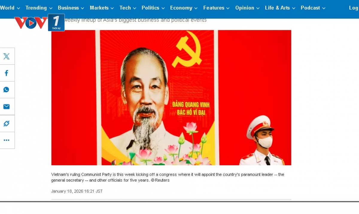 Theo đánh giá của truyền thông quốc tế, Đại hội đại biểu toàn quốc lần thứ XIV của Đảng Cộng sản Việt Nam không chỉ mang ý nghĩa chính trị nội bộ, mà còn là sự kiện được cộng đồng quốc tế theo dõi sát sao. Những quyết sách về phát triển kinh tế, cải cách thể chế và chính sách đối ngoại được thông qua tại Đại hội được kỳ vọng sẽ định hình con đường phát triển của Việt Nam trong nhiều năm tới, khi đất nước bước vào giai đoạn phát triển mới với cả cơ hội lớn và thách thức đan xen./.