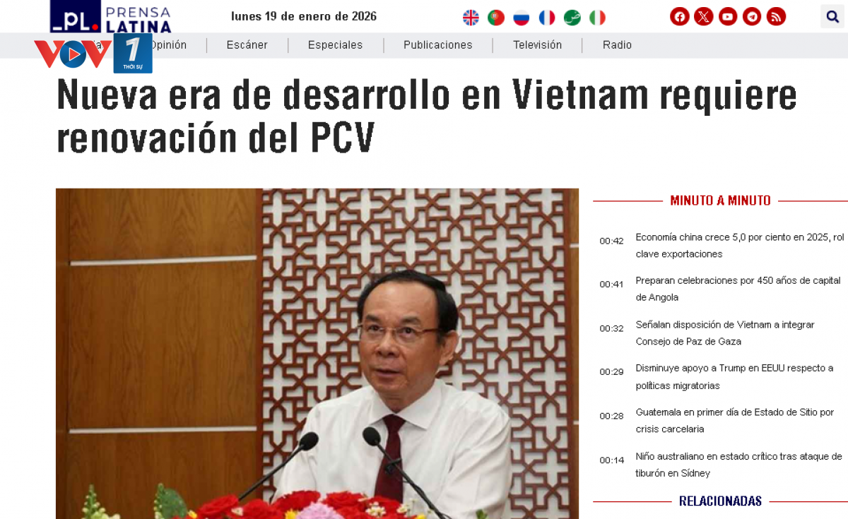 Trong khi đó, các hãng tin Granma và Prensa Latina của Cuba tập trung phân tích khía cạnh tự chủ chiến lược và cải cách thể chế. Các bài viết đánh giá Đại hội XIV của Đảng Cộng sản Việt Nam là một “bước ngoặt” đặt nền móng cho giai đoạn phát triển mới, trong đó tăng trưởng kinh tế được gắn chặt với tiến bộ và công bằng xã hội, xây dựng một nhà nước tinh gọn, hiệu quả, đồng thời đề cao vai trò của khoa học- công nghệ như động lực then chốt của phát triển bền vững.