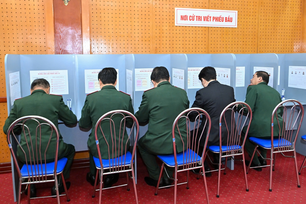 Đúng 7 giờ, Chủ tịch nước Lương Cường và đồng chí Nguyễn Trọng Nghĩa, Ủy viên Bộ Chính trị, Bí thư Trung ương Đảng, Chủ nhiệm Tổng cục Chính trị Quân đội nhân dân Việt Nam cùng các cử tri đang công tác trong một số đơn vị thuộc Tổng Cục Chính trị Quân đội nhân dân Việt Nam tiến hành bỏ phiếu, thực hành quyền và nghĩa vụ công dân của mình, lựa chọn để bầu ra những đại biểu tiêu biểu, đủ phẩm chất, năng lực và uy tín, xứng đáng đại diện cho ý chí, nguyện vọng và quyền làm chủ của Nhân dân trong cơ quan quyền lực Nhà nước ở Trung ương và địa phương.