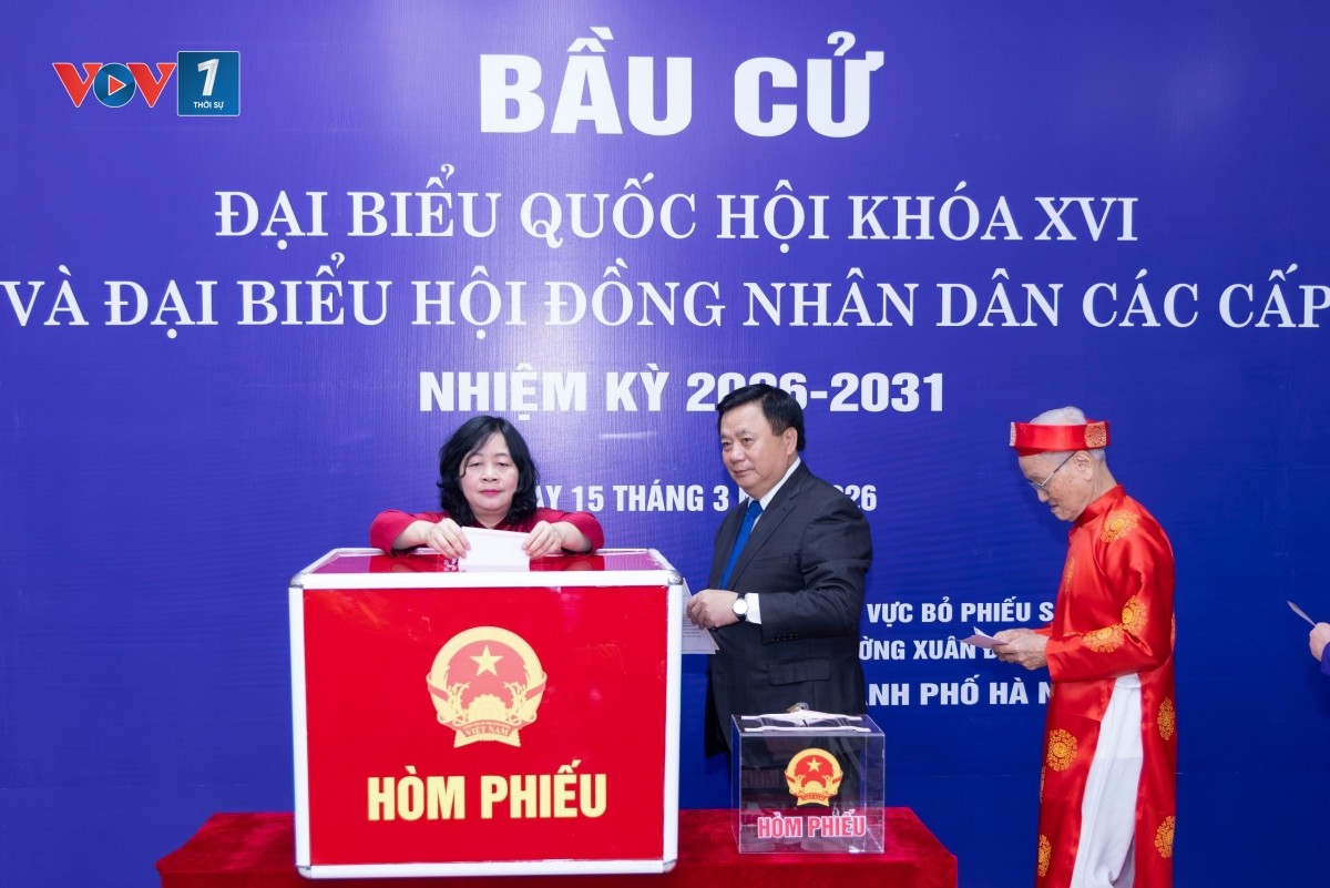 Cùng tham gia tại điểm bỏ phiếu có: Bí thư Trung ương Đảng, Phó Thủ tướng Chính phủ Phạm Thị Thanh Trà; Ủy viên TƯ Đảng, Phó Chủ tịch, Tổng thư ký UBTƯ MTTQ Việt Nam Hà Thị Nga; GS.TS. Nguyễn Xuân Thắng, Chủ tịch Hội đồng Lý luận Trung ương.