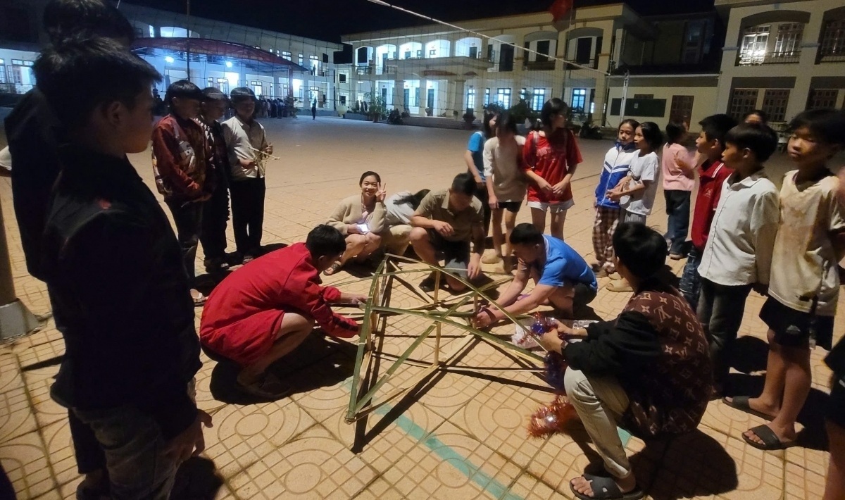 Từ nhiều thanh tre nhỏ, chiếc đèn ông sao lớn dần hoàn thiện dưới bàn tay sáng tạo và tâm huyết của thầy trò Trường PTDT bán trú THCS Co Mạ, xã Co Mạ, Sơn La. Nơi rẻo cao, cách xa phố thị, không trò chơi hiện đại, không bánh quà xa xỉ… nhưng học trò nơi đây vẫn đang đón một mùa trăng tròn ấm áp, đong đầy yêu thương.