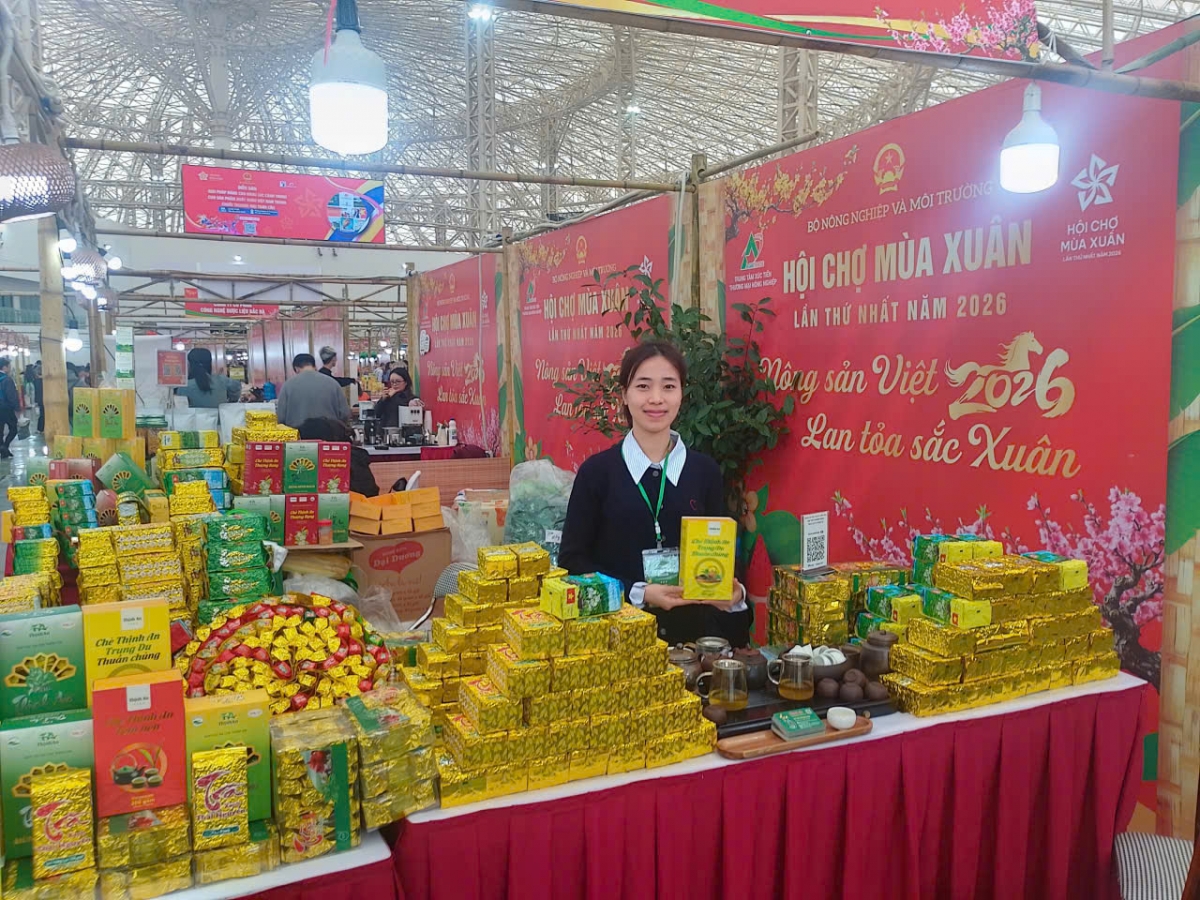 Bước vào các gian hàng của các HTX, doanh nghiệp tỉnh Sơn La tại hội chợ Xuân ở Đông Anh, Hà Nội, du khách như chạm vào một góc Tây Bắc thu nhỏ. Dưới cành đào rừng phơn phớt hồng, bên bàn trà giản dị, hương chè lan nhẹ trong cái se lạnh ngày giáp Tết. Những sản vật núi rừng được bày biện mộc mạc, đủ để níu chân người qua lại. Trong trang phục truyền thống, anh Giàng A Thào và chị Mùa Thị Tồng (Công ty TNHH Trà và đặc sản Tây Bắc) chậm rãi giới thiệu từng sản phẩm, gửi theo đó hương vị, nếp sống và tình cảm của vùng cao về với Thủ đô những ngày xuân cận kề.