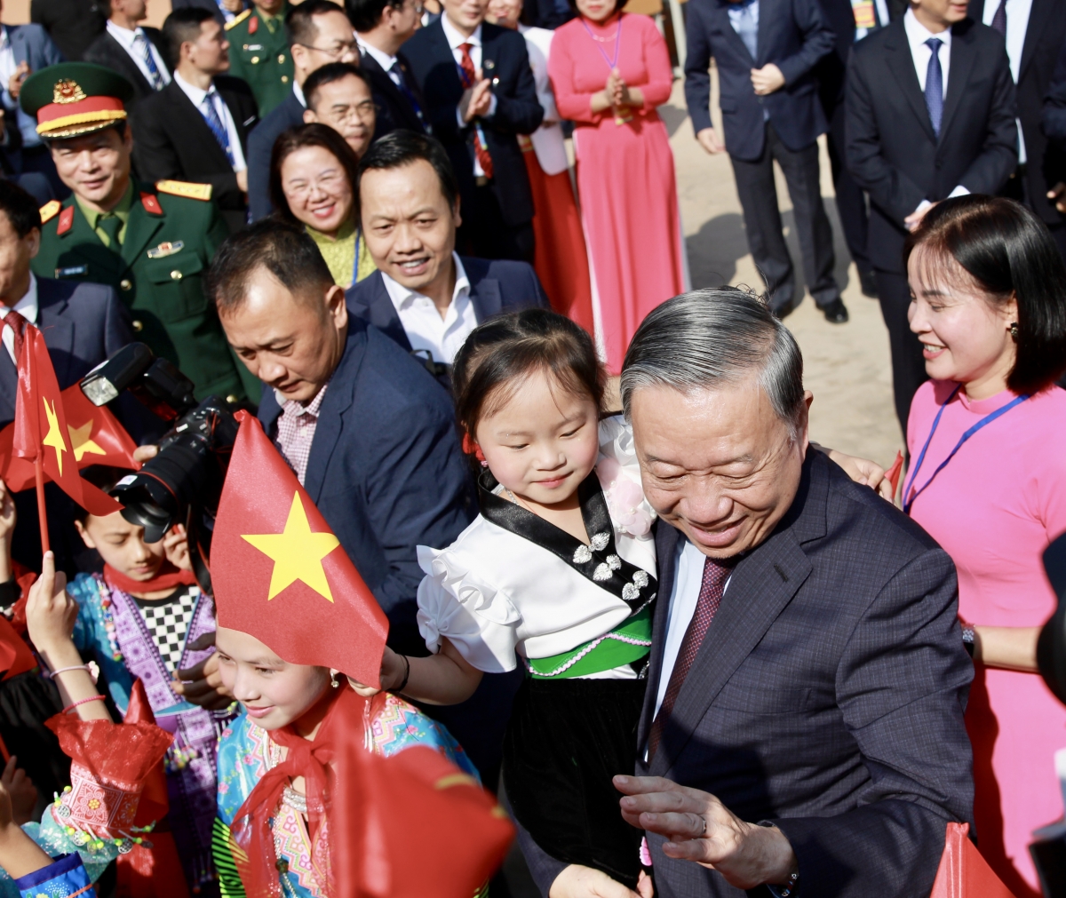 Phát biểu tại buổi lễ, Tổng Bí thư Tô Lâm khẳng định, Đảng ta luôn xác định giáo dục và đào tạo là quốc sách hàng đầu, là nền tảng để phát triển đất nước nhanh và bền vững. Đối với các địa bàn biên giới, vùng sâu, vùng xa, giáo dục không chỉ là nâng cao dân trí, đào tạo nguồn nhân lực, mà còn là giải pháp căn cơ, lâu dài để giữ vững chủ quyền quốc gia từ gốc rễ – đó là con người, là cộng đồng dân cư gắn bó với đất đai, bản làng, đường biên, cột mốc; đồng thời nhấn mạnh việc hoàn thành và đưa công trình vào sử dụng có ý nghĩa rất quan trọng, thiết thực chào mừng thành công Đại hội đại biểu toàn quốc lần thứ XIV của Đảng, là minh chứng sinh động cho sự quan tâm sâu sắc của Đảng, Nhà nước đối với sự nghiệp giáo dục và đào tạo, nhất là ở vùng đồng bào dân tộc thiểu số, miền núi, biên giới còn nhiều khó khăn. Theo Tổng Bí thư những kết quả bước đầu đó cho thấy, khi chủ trương đúng, khi có sự vào cuộc đồng bộ của cả hệ thống chính trị và sự ủng hộ của Nhân dân, thì những việc khó cũng có thể làm được, làm nhanh và làm hiệu quả.