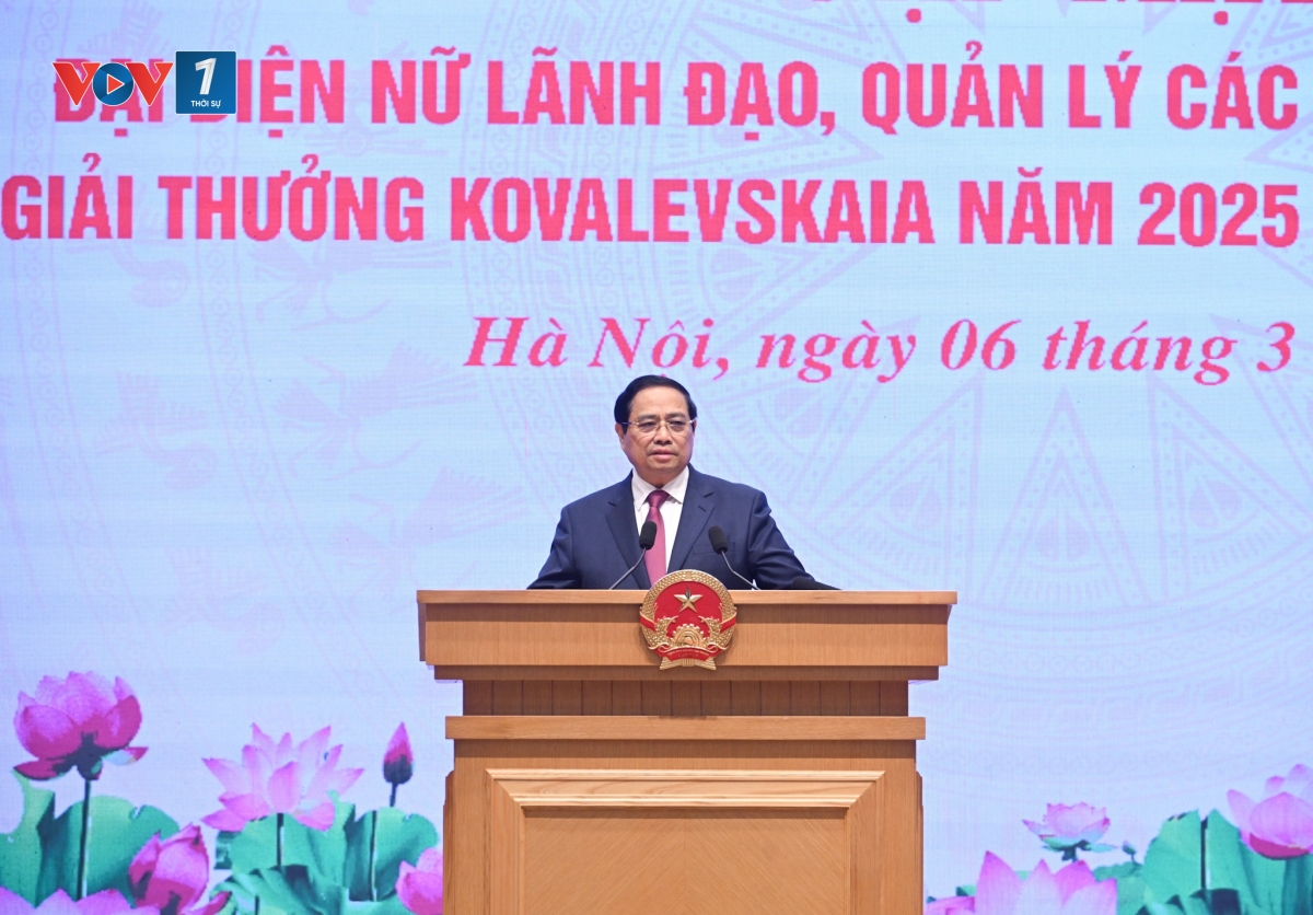 Tại lễ trao Giải thưởng Kovalevskaia năm 2025 diễn ra sáng nay, Thủ tướng Phạm Minh Chính khẳng định: trong tiến trình phát triển và trung tâm của sự chuyển đổi, phụ nữ Việt Nam chính là nguồn lực nội sinh mạnh mẽ, là chủ thể tích cực tham gia dẫn dắt và làm chủ những vận hội mới. Thủ tướng đề nghị tiếp tục quan tâm xây dựng thể chế, chính sách phát triển nguồn cán bộ nữ lãnh đạo, quản lý các cấp; khuyến khích, tạo điều kiện thuận lợi để phụ nữ chủ động sáng tạo tham gia nghiên cứu khoa học và đóng góp sâu hơn vào các mục tiêu chiến lược phát triển đất nước, nhất là về khoa học công nghệ, đổi mới sáng tạo, chuyển đổi số và chuyển đổi xanh.