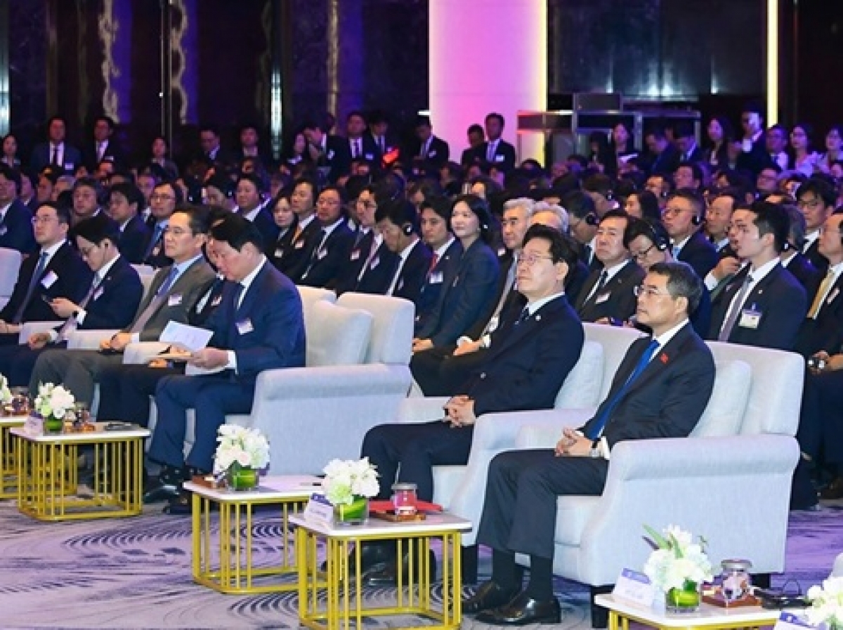 Tại Diễn đàn, Thủ tướng Lê Minh Hưng nhấn mạnh, Diễn đàn mở ra những định hướng lớn cho một giai đoạn hợp tác mới, sâu sắc hơn, hiệu quả hơn và có tầm chiến lược hơn. Nêu những điểm sáng nổi bật hợp tác kinh tế, Thủ tướng cho biết, về đầu tư, Hàn Quốc hiện là nhà đầu tư nước ngoài lớn nhất tại Việt Nam, với gần 10.500 dự án còn hiệu lực và tổng vốn đăng ký đạt trên gần 100 tỷ USD. Về thương mại, Hàn Quốc là đối tác thương mại lớn thứ 3 của Việt Nam với tổng kim ngạch song phương năm 2025 đạt 89,5 tỷ USD và hướng đến mục tiêu 150 tỷ USD vào năm 2030 theo hướng cân bằng và bền vững hơn...