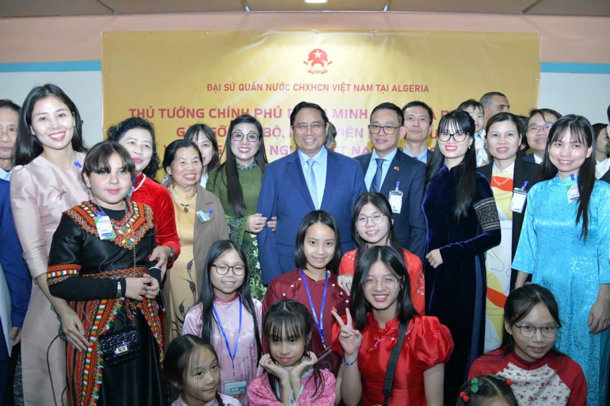 Nhấn mạnh người Việt Nam ở nước ngoài là bộ phận không tách rời, là nguồn lực quan trọng của cộng đồng dân tộc Việt Nam, Thủ tướng bày tỏ vui mừng thấy cộng đồng người Việt tại Algeria luôn đoàn kết, có cuộc sống ổn định và hội nhập tốt vào xã hội sở tại. Đặc biệt là trong cộng đồng đa phần là gia đình đa văn hóa Việt Nam - Algerie. Đây chính là mối lương duyên sâu đậm, sợi dây gắn kết bền chặt giữa hai bên. Thủ tướng đánh giá nền tảng quan hệ giữa hai nước rất tốt đẹp tạo thuận lợi lớn đất nước và cộng đồng người Việt tại Algeria.