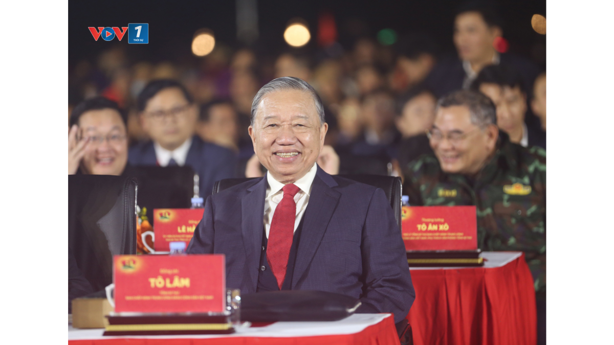 Tổng Bí thư Tô Lâm tới dự và phát biểu tại chương trình; cùng dự tại các điểm cầu có Chủ tịch nước Lương Cường, Thủ tướng Phạm Minh Chính, Chủ tịch Quốc hội Trần Thanh Mẫn, Thường trực Ban Bí thư Trần Cẩm Tú cùng nhiều đồng chí lãnh đạo nguyên lãnh đạo Đảng, Nhà nước.