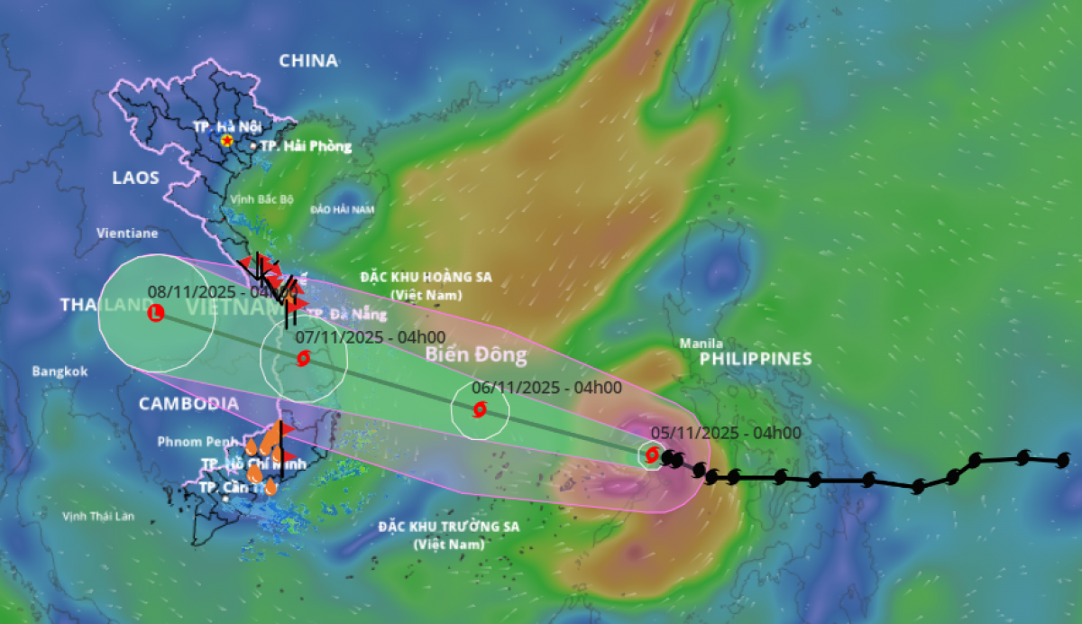 Dự báo, khoảng chiều mai 6/11, bão số 13 (bão Kalmaegi) sẽ di chuyển vào vùng biển miền Trung. Từ đêm mai, bão có khả năng ảnh hưởng trực tiếp khu vực từ Đà Nẵng đến Khánh Hòa, gây gió mạnh và mưa lớn. Trong đó, vùng ven biển có thể có gió bão mạnh từ cấp 10-12, giật cấp 15; sâu trong đất liền có khả năng gió bão mạnh cấp 7-9, giật cấp 13-14. Khu vực mưa to tập trung ở các tỉnh từ Quảng Trị đến Đắk Lắk. Do ảnh hưởng của hoàn lưu bão rộng, cần đề phòng nguy cơ xảy ra giông, lốc và gió giật mạnh cả trước và trong khi bão đổ bộ.