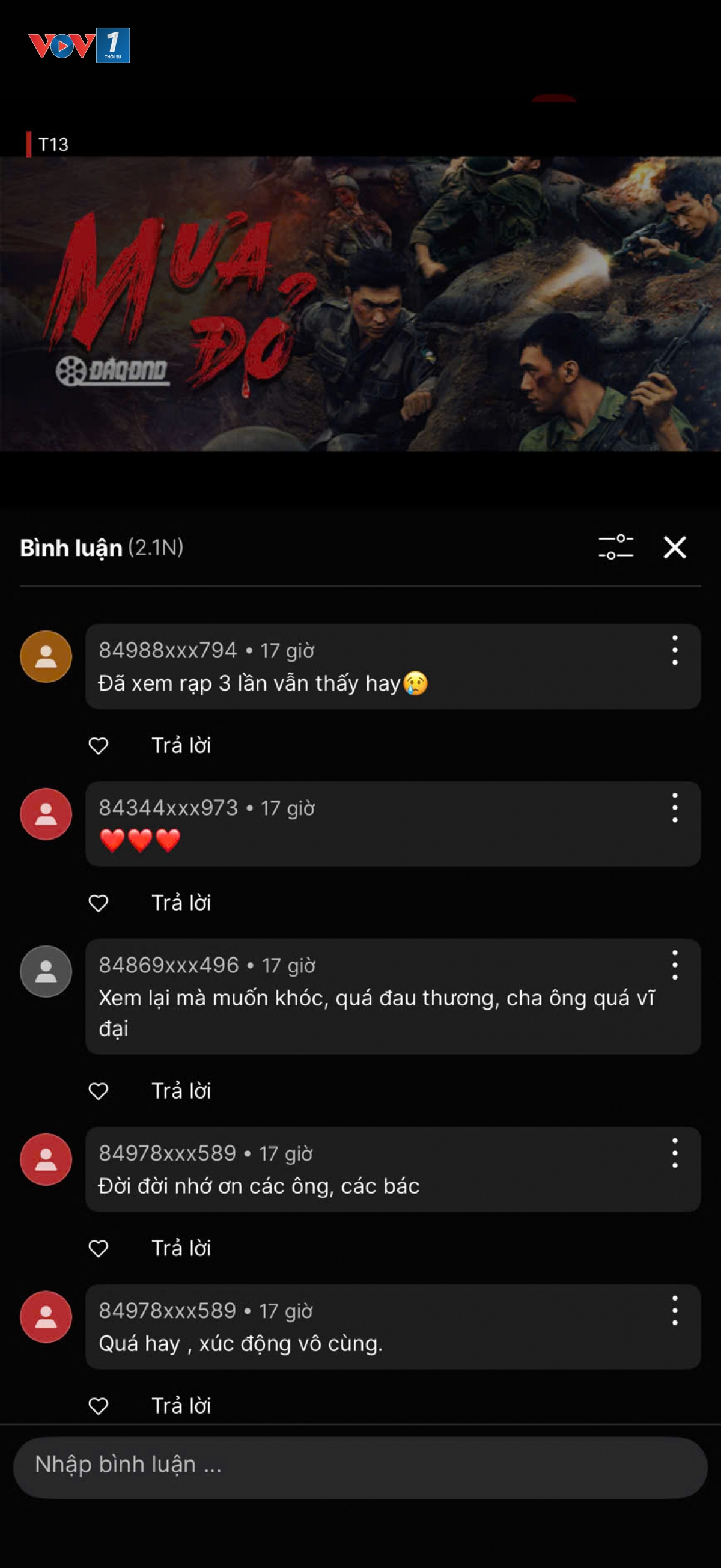 Theo ghi nhận, ngay trong ngày đầu phát sóng, lượng truy cập liên tục tăng cao, có thời điểm hơn 60.000 người cùng xem “Mưa đỏ” trên TV360. Hiệu ứng này tương tự mô hình “xem sự kiện” vốn chỉ phổ biến ở rạp chiếu hoặc các buổi công chiếu tập trung, cho thấy tác phẩm tiếp tục tạo được sức hút mạnh mẽ ngay cả khi phát hành trực tuyến.