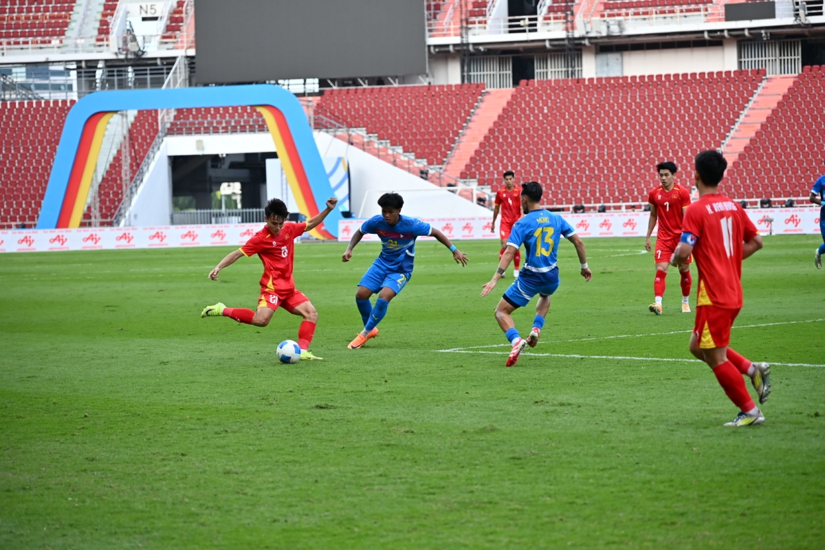 Ngay từ đầu trận, các học trò của HLV Kim Sang-sik chủ động kiểm soát bóng và áp đặt thế trận. Đình Bắc, Khuất Văn Khang và Lê Viktor liên tục di chuyển rộng, tạo khoảng trống để triển khai tấn công. Tuy nhiên, hàng phòng ngự dày đặc của Philippines khiến nhiều pha dứt điểm của Việt Nam chưa đạt hiệu quả.
