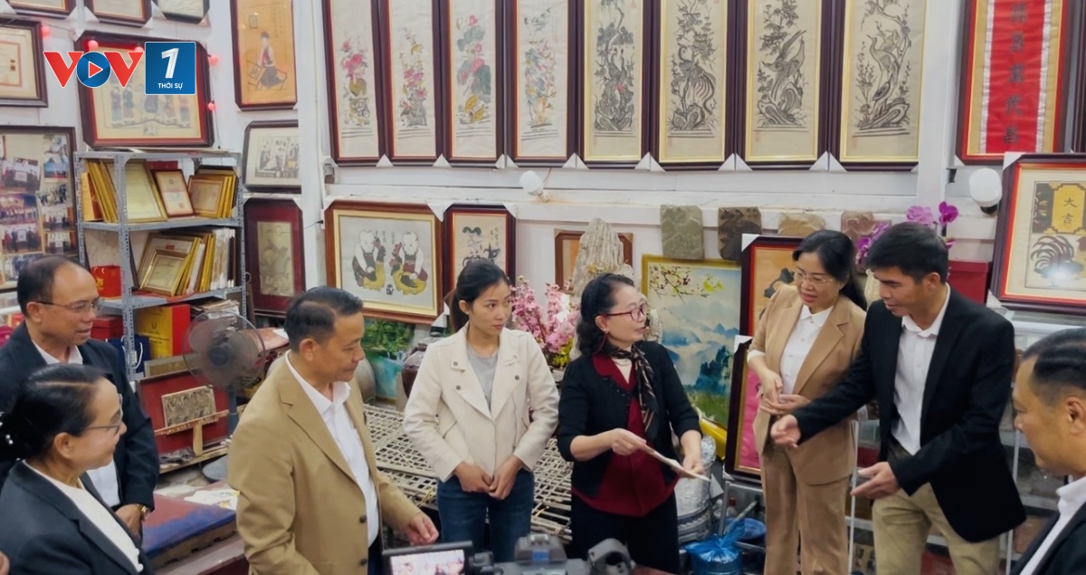 Ông Phoi- Khăm Hùng-Bun-Nhuông, Bí thư Tỉnh uỷ tỉnh Xay Sổm Bun, Lào cùng đoàn đại biểu tỉnh này được nghệ nhân ưu tú Nguyễn Thị Oanh hướng dẫn trải nghiệm từng công đoạn làm tranh, phân biệt giấy điệp, giấy dó với các loại giấy thông thường, cách tạo màu của dòng tranh này có gì đặc biệt… Ông Phoi- Khăm Hùng-Bun-Nhuông cho biết: "Trải nghiệm ở đây và ở trung tâm bảo tồn tranh Đông Hồ, chúng tôi rất ấn tượng. Được biết tranh Đông Hồ được bắt đầu từ thế kỷ 16, được phát triển, lưu giữ cho đến hiện nay, còn có 4 gia đình tiếp tục truyền thống tranh Đông Hồ. Được đến thăm gia đình nghệ nhân ưu tú này chúng tôi rất ấn tượng với nét đẹp của bức tranh cũng như tay nghề sáng tạo mới của tranh Đông Hồ. Đây là việc lưu giữ, phát huy truyền thống văn hoá tốt đẹp của người dân Đông Hồ. Truyền thống văn hoá này là một nguồn lực để phát triển kinh tế xã hội, khai thác muôn đời để lại cho các thế hệ con cháu mai sau. Khi đến trải nghiệm và tận tay làm bức tranh Đông Hồ, tôi rất xúc động."