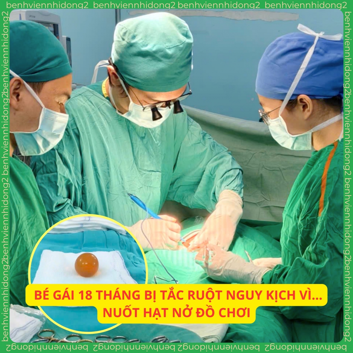 # Thông tin từ Bệnh viện Nhi đồng 2 (TPHCM), bệnh viện vừa lấy thành công dị vật là hạt nở đồ chơi cho bé gái 18 tháng. Trước đó, bệnh nhi được gia đình đưa đến bệnh viện sau khi liên tục ói ra thức ăn và dịch vàng, mệt nhiều. Gia đình bệnh nhi cho biết, trước nhập viện 2 ngày em có ăn kẹo không rõ loại, sau đó nôn ói. Bệnh nhi được khám tại cơ sở y tế gần nhà với chẩn đoán nhiễm trùng đường ruột. Tuy nhiên, quá trình điều trị tình hình không thuyên giảm nên gia đình đưa em đến Bệnh viện Nhi đồng 2. Các bác sĩ khuyến cáo: Phụ huynh nên quan tâm nhiều hơn đến các loại đồ chơi mà con em mình thường sử dụng, đặc biệt là những món có nguy cơ cao bị trẻ cho vào miệng hoặc nuốt phải như hạt nở, nam châm đồ chơi…