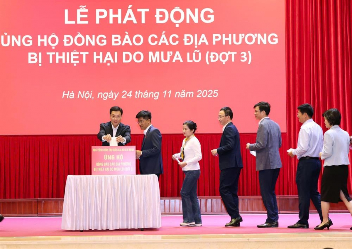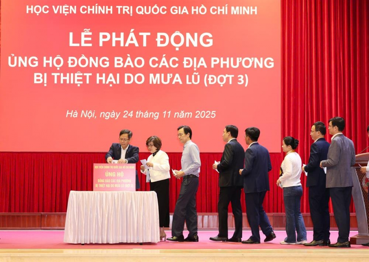 Trước tình hình đó, phát huy truyền thống đoàn kết, nghĩa tình và tinh thần sẻ chia với đồng bào vùng lũ, Học viện Chính trị quốc gia Hồ Chí Minh tổ chức Lễ phát động ủng hộ nhằm kịp thời chung tay hỗ trợ và tiếp thêm nguồn lực để các địa phương sớm khắc phục hậu quả thiên tai, ổn định đời sống.