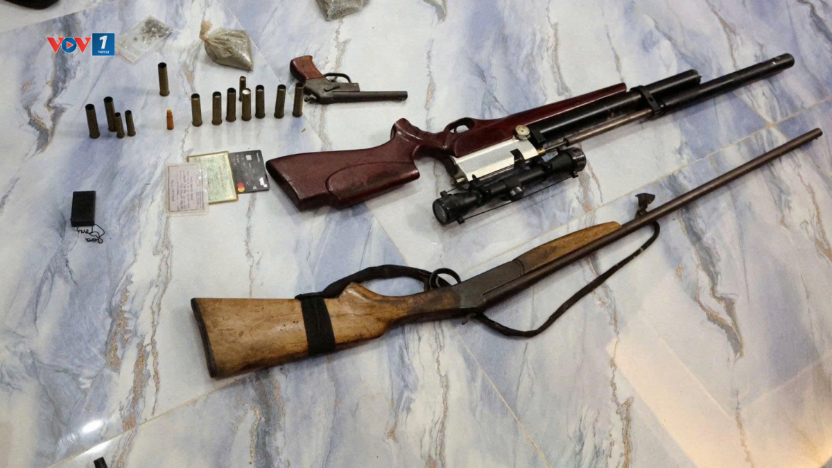 Khám xét tại 28 điểm, Cơ quan Công an thu giữ nhiều tang vật, tài liệu, sổ sách kế toán, các loại giấy tờ, sổ đỏ, hợp đồng về nhà đất, trong đó có 4 khẩu súng; 6 viên đạn găm bi; 1 gói thuốc súng; 1 gói đạn viên và nhiều đồ vật, tài liệu có liên quan.