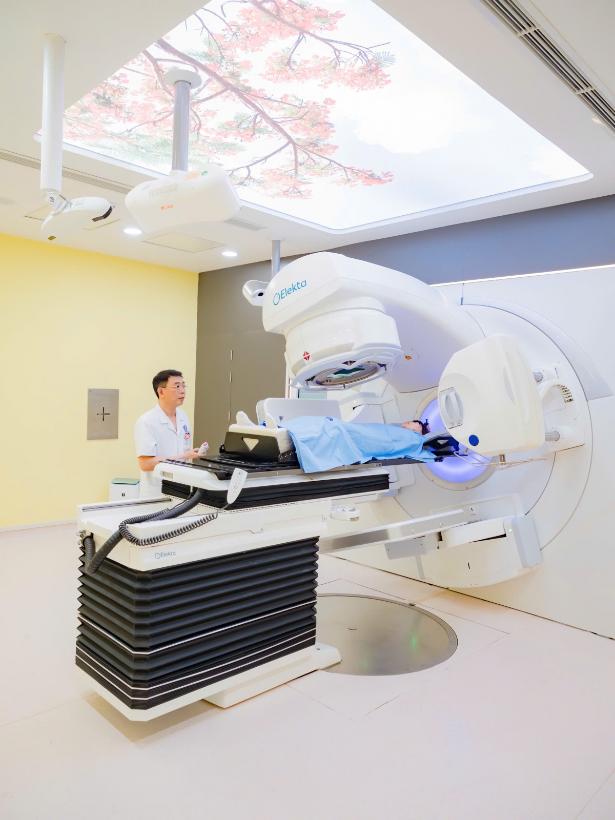 Theo GS.TS Lê Văn Quảng, Giám đốc Bệnh viện K, điều trị ung thư là điều trị đa mô thức, có sự phối hợp giữa 3 chuyên ngành lớn: Phẫu thuật, điều trị toàn thân và xạ trị. Trong đó xạ trị là một phương pháp quan trọng, hiệu quả đối với nhiều bệnh ung thư. Tính đến tháng 1/2026, bệnh viện K đã có 9 máy xạ trị gia tốc tuyến tính tại 3 cơ sở của BV. Tuy nhiên, với số lượng bệnh nhân ngày càng tăng, nhu cầu điều trị ngày càng nhiều, được sự quan tâm chỉ đạo của Chính phủ, lãnh đạo Bộ Y tế, bệnh viện K đã đầu tư thêm 3 máy xạ gia tốc Versa HD phiên bản mới nhất đưa vào vận hành để điều trị cho người bệnh. Hệ thống máy xạ hiện đại này cho phép triển khai đầy đủ các kỹ thuật xạ trị tiên tiến nhất hiện nay: 3D, IMRT, VMAT, xạ phẫu SRS/SRT và SBRT với suất liều rất cao lên đến 1500 tới 2200 MU/phút, thời gian điều trị giảm từ 10 phút được rút ngắn xuống chỉ còn 2–3 phút, trường chiếu nhỏ nhất đạt 3x3 mm tập trung liều tối đa vào khối u, đồng thời bảo vệ các cơ quan lành xung quanh, kiểm soát toàn bộ chuyển động của khối u theo từng nhịp thở, không xâm lấn, không phát thêm bức xạ, tạo nền tảng cho xạ trị chính xác và hiệu quả cao, nâng cao hiệu quả điều trị cho người bệnh.
