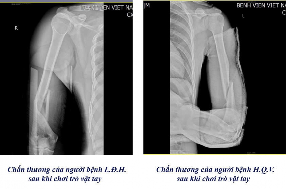 # Chỉ trong vòng 1 tuần, Khoa Chấn thương Chỉnh hình & Bỏng, Bệnh viện Việt Nam – Thụy Điển Uông Bí tiếp nhận 3 trường hợp gẫy xương cánh tay do xuất phát từ trò chơi vật tay. Theo các bác sĩ, khi vật tay, lực xoay đột ngột tác động lên xương cánh tay có thể vượt ngưỡng chịu đựng, gây gẫy xoắn xương cánh tay, thậm chí di lệch. Các trường hợp này thường phải tiến hành phẫu thuật kết hợp xương bằng nẹp vít. Đây là kỹ thuật hiện đại và phổ biến trong điều trị gẫy xương cánh tay, mang lại hiệu quả cao giúp người bệnh gẫy xương mau lành, cố định vững chắc vị trí gẫy và tạo điều kiện thuận lợi cho quá trình liền xương. Các bác sĩ cũng khuyến cáo người dân không tham gia trò vật tay. Khi xảy ra tai nạn, cần cố định tạm thời cánh tay, không tự nắn chỉnh, nhanh chóng đưa người bệnh đến cơ sở y tế gần nhất để điều trị.