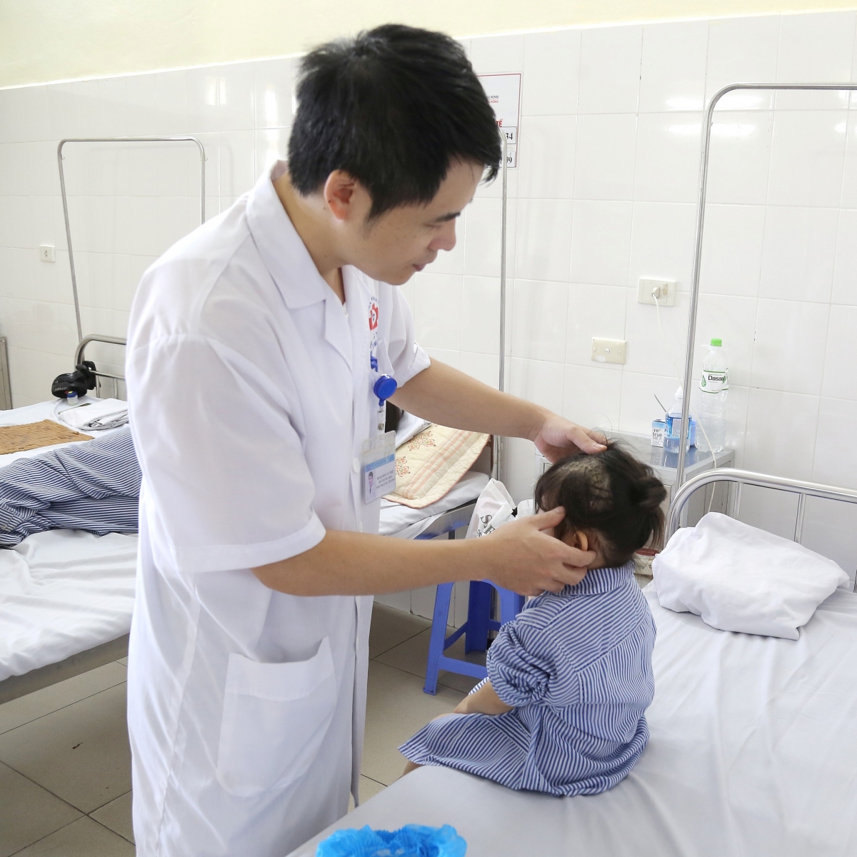 # Thông tin từ Bệnh viện Đa khoa tỉnh Quảng Ninh cho biết, các bác sĩ của bệnh viện mới đây đã phẫu thuật cấp cứu thành công bệnh nhi 3 tuổi (trú tại phường Hồng Gai, tỉnh Quảng Ninh) bị ngã từ cầu thang dẫn đến vỡ xương sọ, tụ máu ngoài màng cứng. Theo gia đình cho biết, trước khi nhập viện 1 ngày, trẻ không may ngã cầu thang trong lúc chơi ở nhà. Sau khi ngã, trẻ không quấy khóc, vẫn vui chơi nên gia đình chủ quan không đưa đi kiểm tra. Tuy nhiên đến hôm sau, trẻ sưng đau vùng đầu, nôn và quấy khóc nên được gia đình nhanh chóng đưa vào viện. Sau phẫu thuật, bệnh nhi tỉnh nhanh và chơi ngoan và sức khỏe dần ổn định. Đánh giá về ca bệnh, BS.CKI Đinh Văn Triệu - Phó khoa phụ trách khoa Phẫu thuật Thần kinh – Cột sống, Bệnh viện Đa khoa tỉnh Quảng Ninh cho hay, việc phẫu thuật sọ não kịp thời trong trường hợp này đã giúp loại bỏ máu tụ, giải phóng chèn ép và giảm tối đa nguy cơ biến chứng về sau.