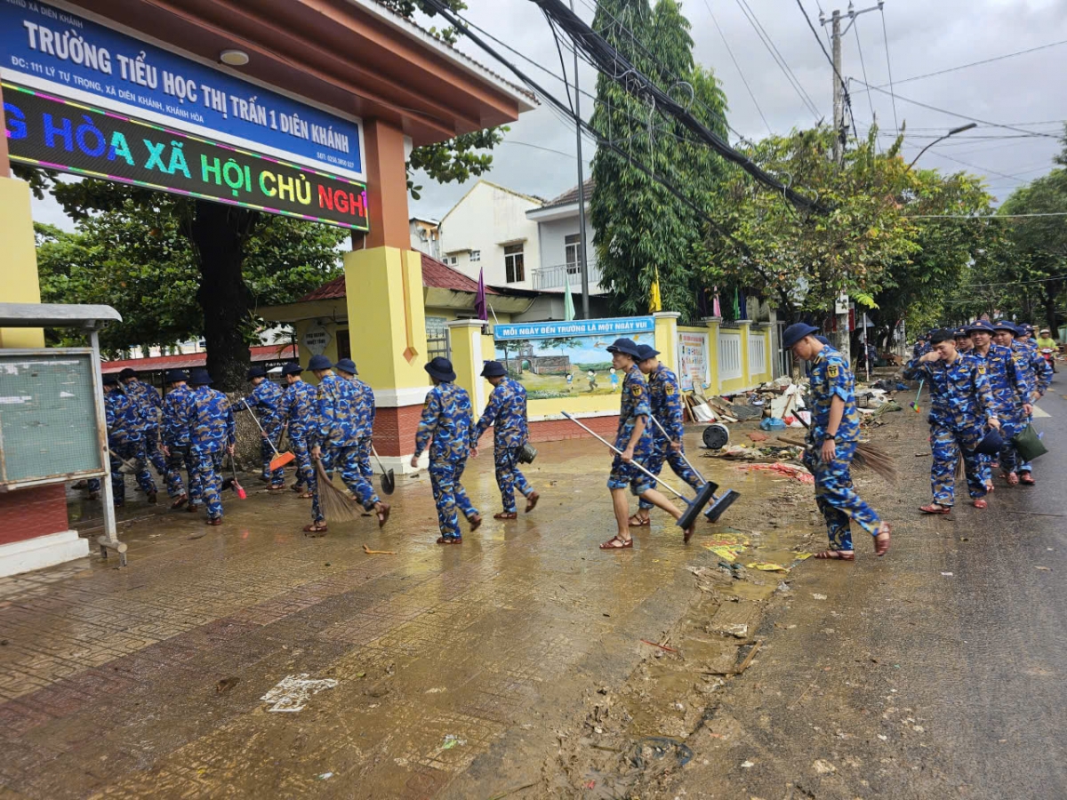 Ghi nhận tại hiện trường, nhiều hộ dân bị cuốn trôi vật dụng, bùn đất phủ dày, trường lớp hư hỏng nặng. Bộ đội Hải quân làm việc khẩn trương, xuyên suốt, hỗ trợ người dân khôi phục sinh hoạt sau thiên tai.