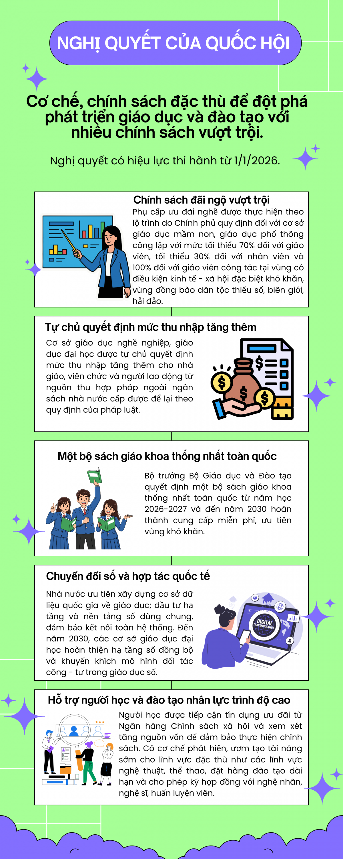 VOV1 - Tại Kỳ họp thứ 10, Quốc hội đã thông qua Nghị quyết về một số cơ chế, chính sách đặc thù, vượt trội để đột phá phát triển giáo dục và đào tạo với nhiều nhóm chính sách vượt trội.
