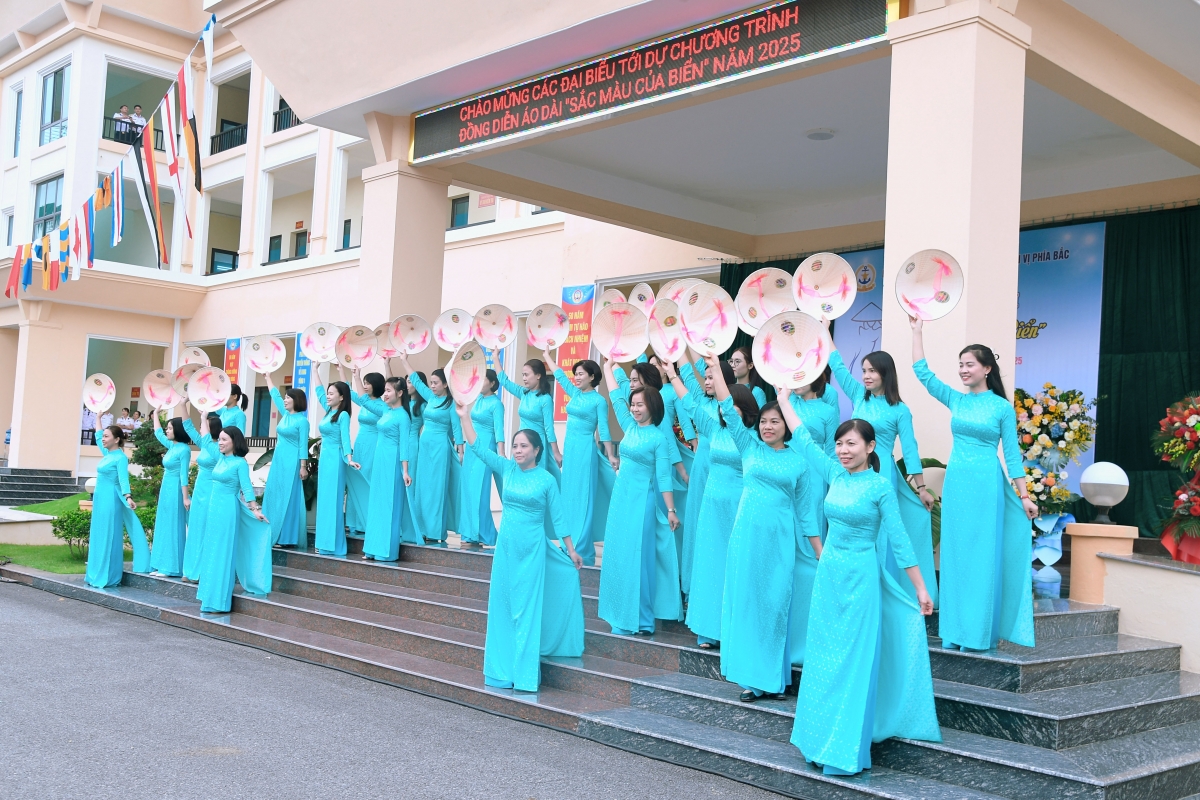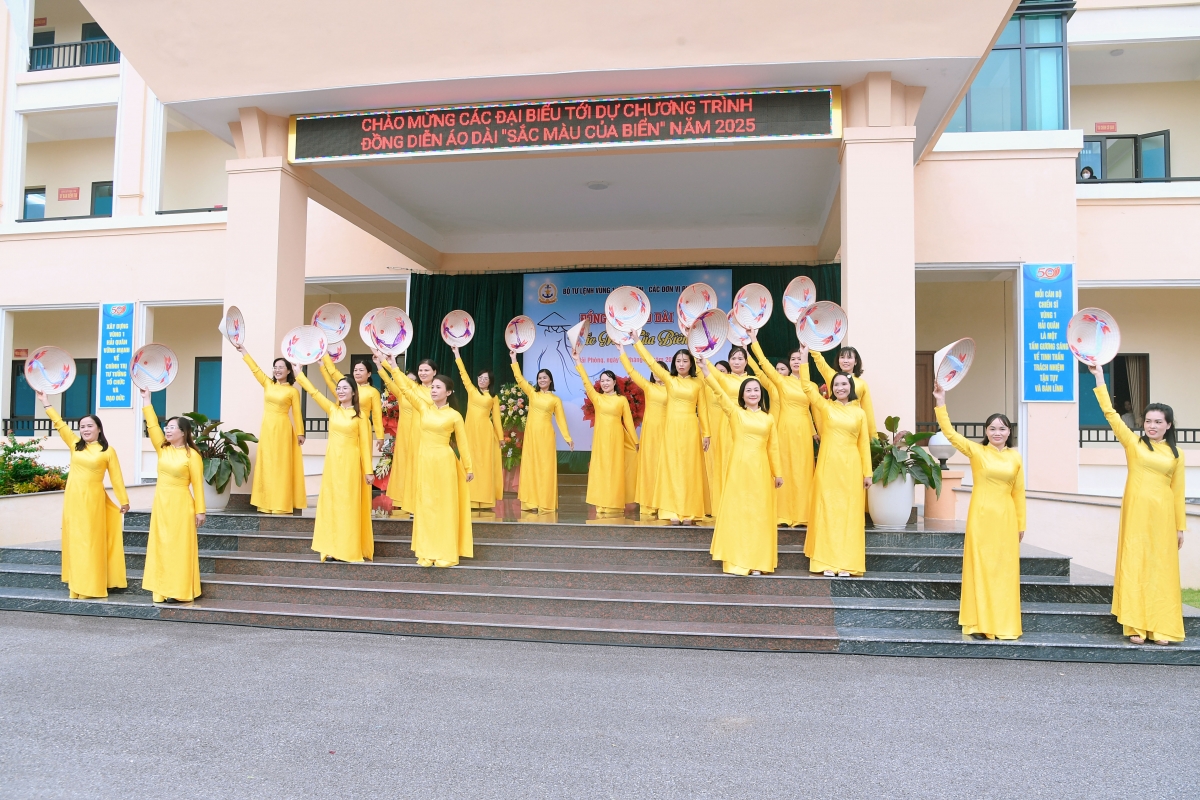 Với chủ đề “Sắc màu của biển”, chương trình thu hút 450 cán bộ, hội viên phụ nữ Vùng 1 và các cơ quan, đơn vị trong Quân chủng Hải quân khu vực phía Bắc tham gia đồng diễn áo dài truyền thống, tạo nên bức tranh sinh động, rực rỡ sắc màu. Những tà áo dài thướt tha, mềm mại tung bay trong gió thể hiện vẻ đẹp dịu dàng, duyên dáng, tự tin của người phụ nữ Hải quân.