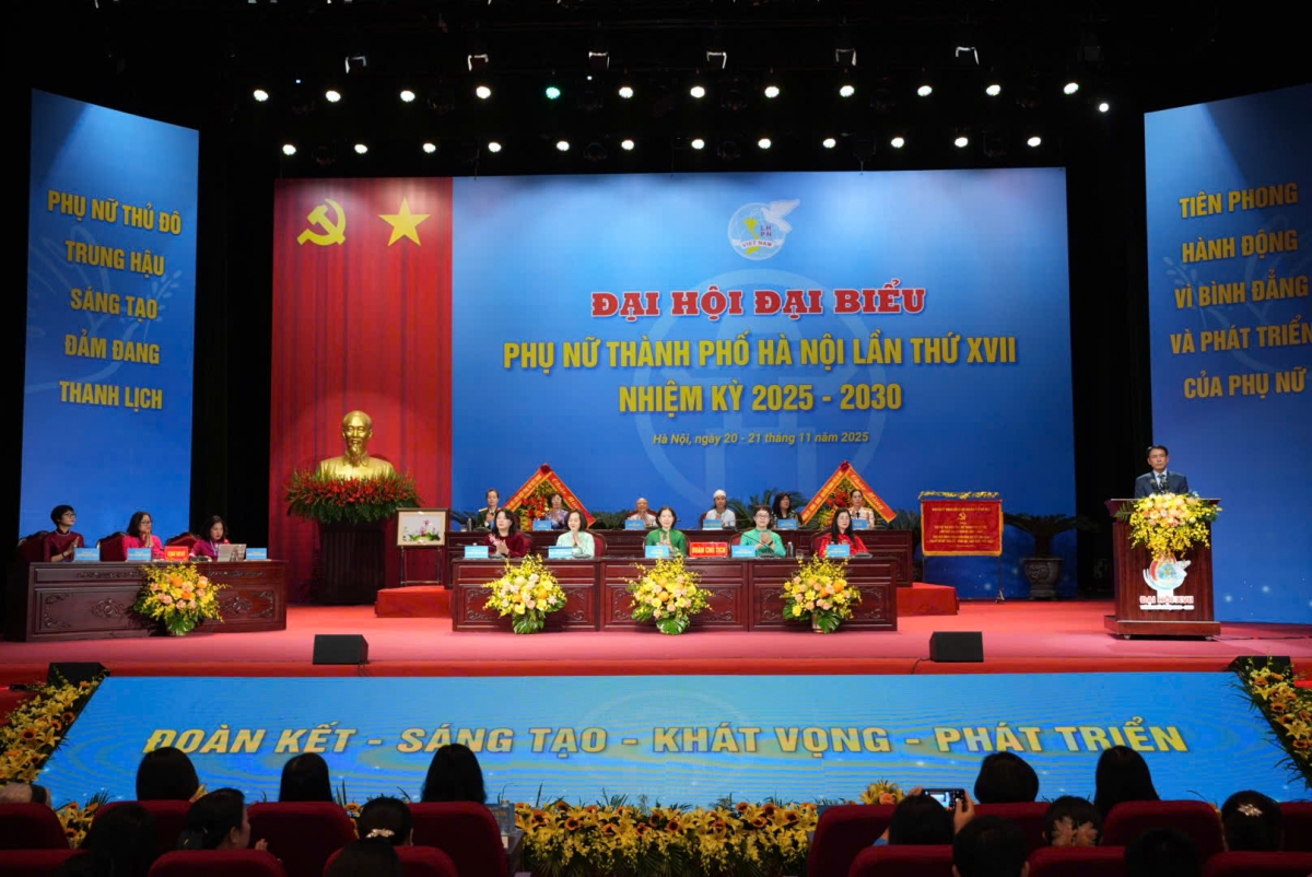 Tại đại hội, ông Nguyễn Trọng Đông, Phó Bí thư Thành ủy Hà Nội đánh giá, giai đoạn 2020-2025, Hà Nội đạt nhiều kết quả nổi bật, như hoàn thành 16/20 chỉ tiêu, trong đó, 4 chỉ tiêu vượt kế hoạch; kinh tế tăng trưởng 6,57%; thu ngân sách chiếm 1/4 cả nước; văn hóa - xã hội ổn định; quốc phòng - an ninh đảm bảo. Trong thành tựu chung của Thủ đô, phụ nữ Hà Nội có đóng góp quan trọng với nhiều phong trào nhân văn, thiết thực như “5 không - 3 sạch”, “Phụ nữ Thủ đô ứng xử đẹp”, “Mẹ đỡ đầu”, hỗ trợ phụ nữ nghèo, chăm lo Mẹ Việt Nam Anh hùng…Bên cạnh kết quả đạt được, ông Nguyễn Trọng Đông nhấn mạnh: Đại hội đã chỉ ra 4 nhóm hạn chế cần khắc phục trong nhiệm kỳ tới, do đó, trong nhiệm kỳ mới, Hội tập trung 6 nhiệm vụ trọng tâm gồm: Đổi mới hoạt động Hội; ứng dụng mạnh mẽ chuyển đổi số; Thúc đẩy bình đẳng giới, phát hiện và bồi dưỡng cán bộ nữ; Phát triển toàn diện phụ nữ Thủ đô về trí tuệ, sức khỏe, bản lĩnh, nhân ái; Giữ gìn giá trị gia đình; tăng cường bảo vệ phụ nữ và trẻ em; xây dựng “không gian mạng an toàn”; Phát huy vai trò phụ nữ trong kinh tế xanh, kinh tế số, khởi nghiệp sáng tạo; Nâng cao chất lượng giám sát, phản biện xã hội; mở rộng đối ngoại nhân dân. Ông Nguyễn Trọng Đông yêu cầu Ban Chấp hành khóa XVII khẩn trương triển khai Nghị quyết Đại hội, tạo chuyển biến rõ rệt trong toàn hệ thống Hội, đồng thời đề nghị các cấp ủy, chính quyền tiếp tục đồng hành để phong trào phụ nữ Hà Nội phát triển bền vững trong giai đoạn mới.