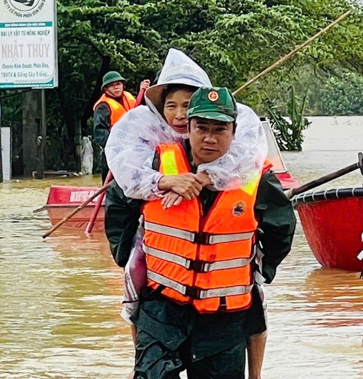 “Bộ đội biên phòng đã huy động tất cả lực lượng phương tiện thực hiện phương châm 4 tại chỗ để giúp dân, như duy trì nghiêm chế độ trực phòng, chống thiên tai 24/24 đúng theo quy định, đảm bảo điều hành chỉ huy và các thủ trưởng Ban chỉ huy thì phân công đi kiểm tra các khu vực ngập úng ngập, phối hợp với địa phương như sáng nay có 2 Đoàn công tác đi xuống tại xã Thăng Trường để hỗ trợ nước uống, mì tôm, cùng nhà hảo tâm vào bệnh viện của địa bàn”