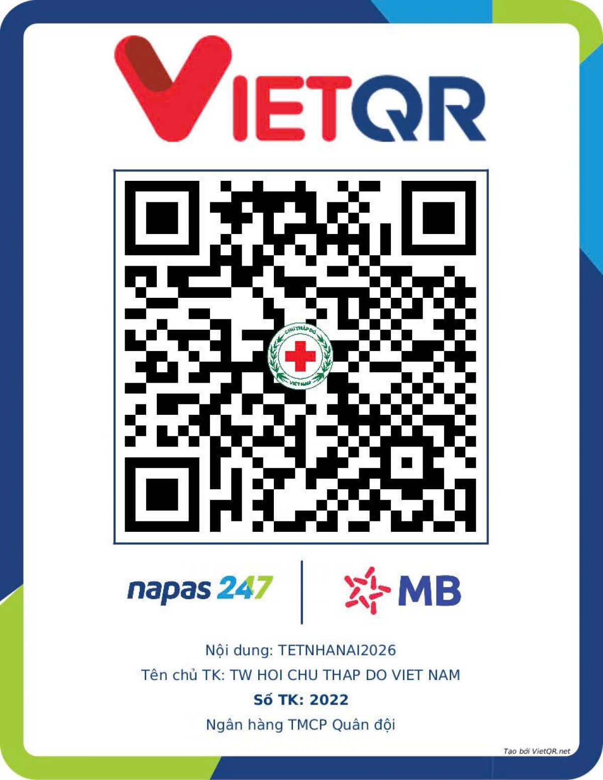 Nhân dân đóng góp bằng cách chuyển khoản tới số tài khoản: 2022, tại Ngân hàng TMCP Quân đội (MB), Tên tài khoản: TW HOI CHU THAP DO VIET NAM