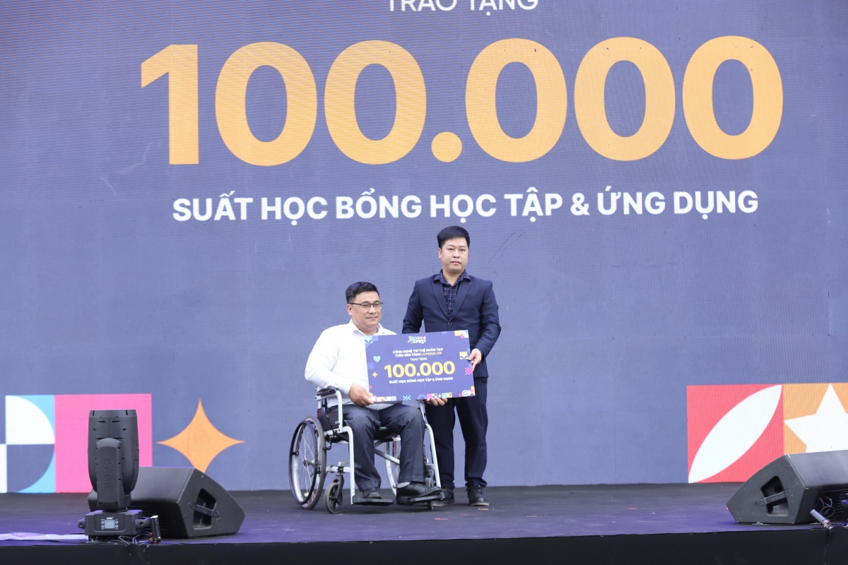 Tại chương trình, các nhà tài trợ đã trao tặng 100.000 suất học bổng về sử dụng các công cụ AI; 1.000 khoá học Online về phát triển bản thân trong thời đại số; 200 suất hỗ trợ trang thiết bị thiết yếu như xe lăn, chân tay giả; tặng 100 suất phẫu thuật chỉnh hình và mổ tim miễn cho các hoàn cảnh khó khăn. Những hoạt động này không chỉ góp phần giảm bớt khó khăn trước mắt, mà còn tạo thêm điều kiện để người khuyết tật nâng cao năng lực số, cải thiện khả năng tiếp cận, phục hồi chức năng, tự tin vươn lên và tham gia sâu rộng hơn vào đời sống xã hội.