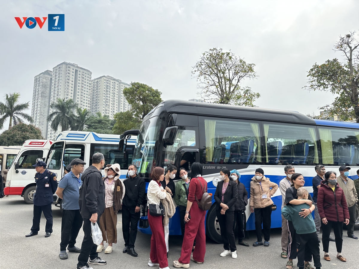 “Chuyến xe yêu thương” miễn phí đã đưa bệnh nhân và người nhà về quê đón Tết tại nhiều tỉnh, thành phố như Hải Phòng, Hưng Yên, Tuyên Quang, Phú Thọ, Thái Nguyên… Đội ngũ y bác sĩ mặc áo blouse trắng cùng các đội thiện nguyện sắp xếp đồ đạc và hướng dẫn từng người bệnh lên xe.