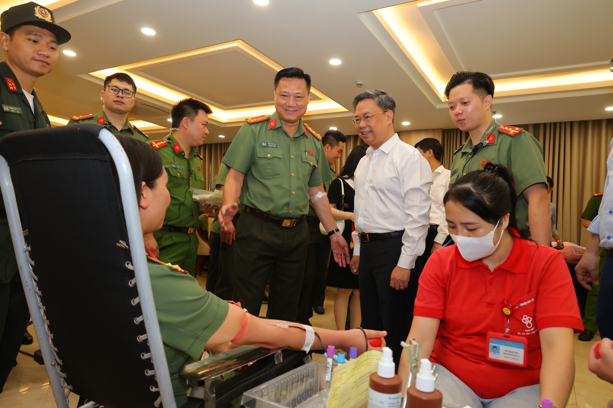 Phát biểu tại buổi lễ, Thiếu tướng Dương Đức Hải – Phó Giám đốc Công an thành phố Hà Nội khẳng định: Hiến máu cứu người không chỉ là trách nhiệm xã hội mà còn là mệnh lệnh từ trái tim của người chiến sĩ Công an Thủ đô. Hành trình ‘Giọt máu nghĩa tình’ là dịp để mỗi cán bộ, chiến sĩ lan tỏa thông điệp nhân văn: ‘Một giọt máu cho đi – Một cuộc đời ở lại’.”