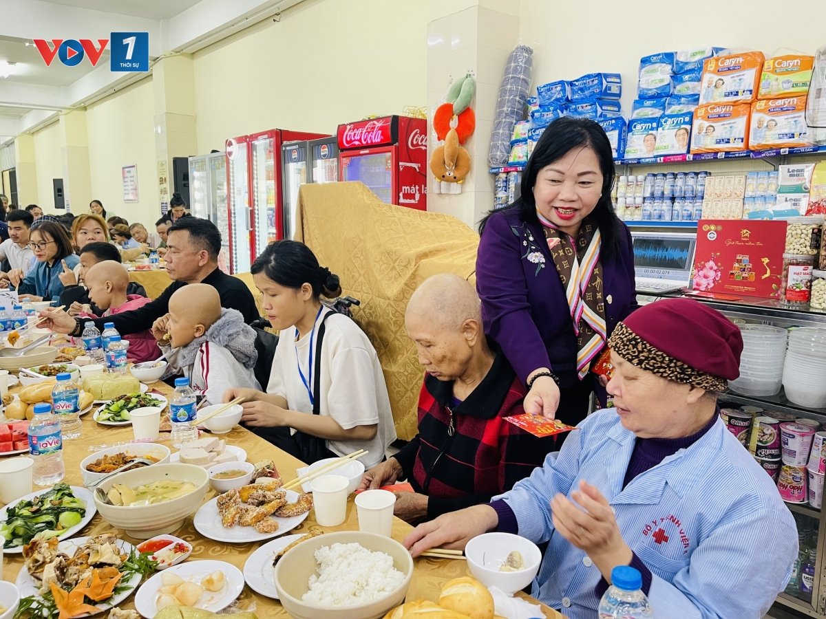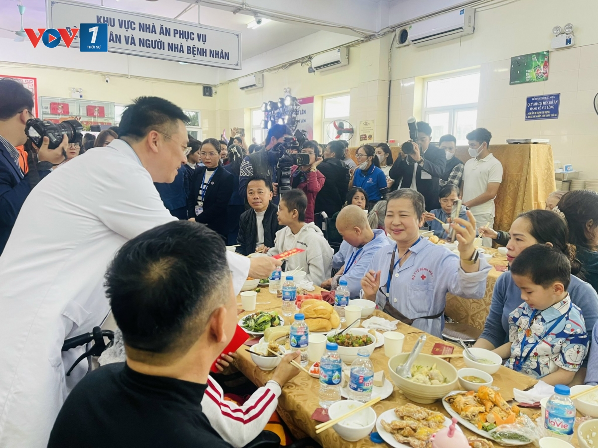 Hơn 1.200 người bệnh cùng đại diện người nhà bệnh nhân và cán bộ y tế đã ngồi lại bên nhau, với hơn 200 mâm cơm tất niên đầm ấm, xua đi ngày Đông lạnh giá và cả những mệt mỏi, lo lắng của đợt điều trị kéo dài. Quây quần bên nhau thưởng thức những hương vị của ngày Tết cổ truyền với bánh chưng, nem, giò, thịt gà quay, cá rán, canh măng móng giò..., nhiều bệnh nhân rưng rưng xúc động, trao nhau những cái bắt tay, vòng ôm thật chặt. Người được về quê đón Tết nguyên đán, chúc bệnh nhân ở lại điều trị sớm lui bệnh.