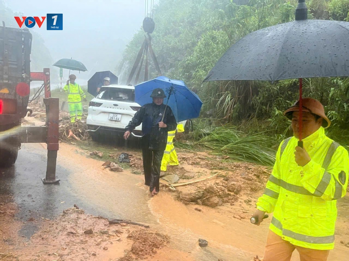 Trên cao tốc La Sơn-Túy Loan, nhiều điểm sạt lở nghiêm trọng khiến giao thông bị gián đoạn. Lực lượng Cảnh sát giao thông Công an thành phố đã lập các chốt chặn, đặt biển cảnh báo và hướng dẫn phương tiện không di chuyển vào khu vực nguy hiểm, bảo đảm an toàn cho người, phương tiện và tài sản.