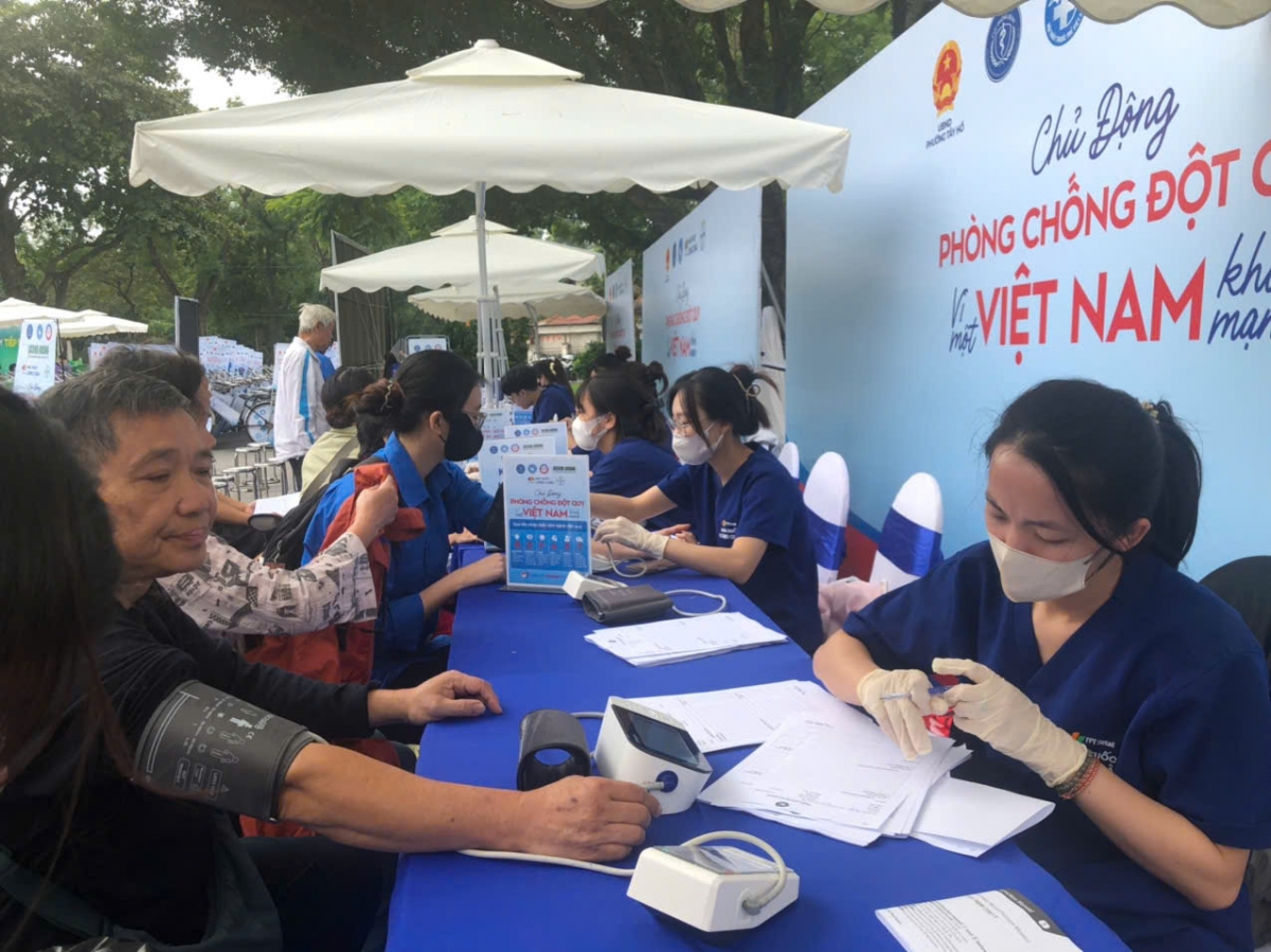 Ngay sau lễ phát động, các thầy thuốc trẻ tình nguyện từ nhiều bệnh viện như: Bạch Mai, 108, Đại học Y Hà Nội và Hội Đột quỵ Hà Nội... đã khám sàng lọc miễn phí cho hàng nghìn người dân Thủ đô.