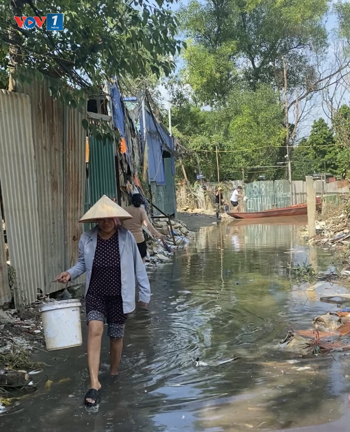 Tại ngõ 76 An Dương, phường Hồng Hà, nhiều hộ dân sinh sống ngoài bãi giữa tất tả di chuyển đồ đạc vào bờ, khẩn trương ứng phó với nguy cơ ngập lụt, để bảo vệ tài sản và an toàn cho gia đình.