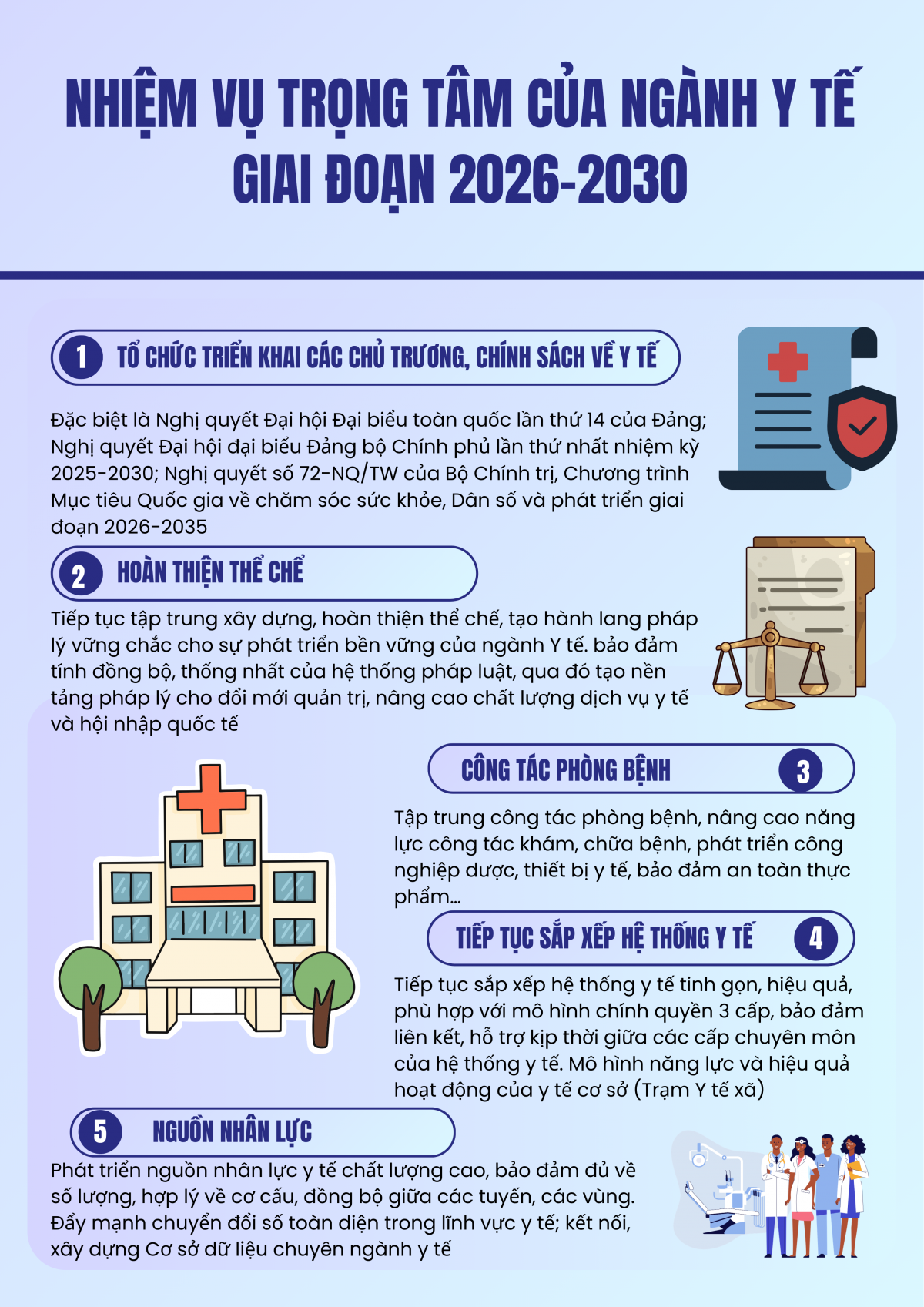 Nhiệm vụ trọng tâm của ngành Y tế trong giai đoạn 2026-2030