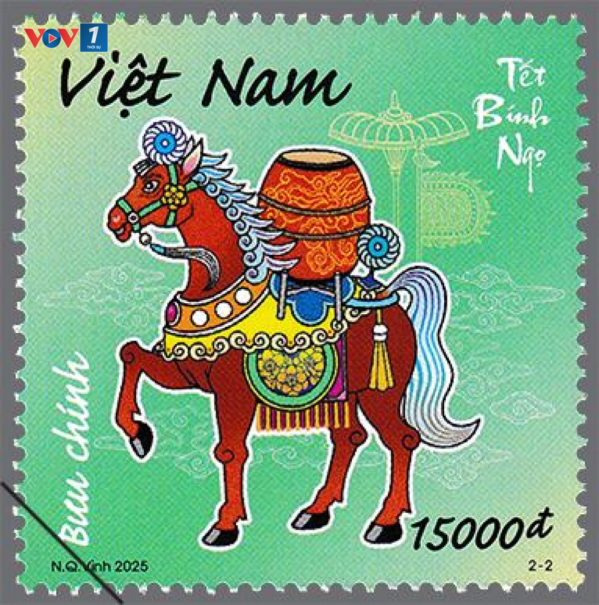 Bộ tem "Tết Bính Ngọ" gồm 02 mẫu tem và 01 blốc, do họa sỹ Nguyễn Quang Vinh thiết kế, truyền tải thông điệp "Mã đáo thành công", lời chúc quen thuộc nhưng sâu sắc, gửi gắm niềm tin về một hành trình mới khởi sắc, bền bỉ và thành công.