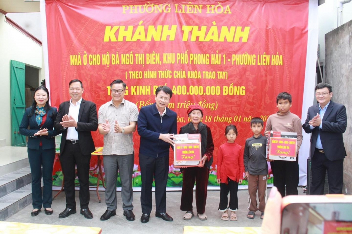Căn nhà nhỏ của bà Ngô Thị Biên (83 tuổi) ở khu phố Phong Hải 1, phường Liên Hòa, rộn ràng tiếng cười, nói của hàng xóm láng giềng tới chia vui. Trong căn nhà cấp 4, 3 gian rộng hơn 60 m2, bà Ngô Thị Biên chậm rãi nhắc lại quãng thời gian sống trong những bức tường bong tróc, mái dột đã tồn tại suốt 40 năm. Mỗi mùa mưa bão đi qua là một lần bốn bà cháu nơm nớp lo sợ.