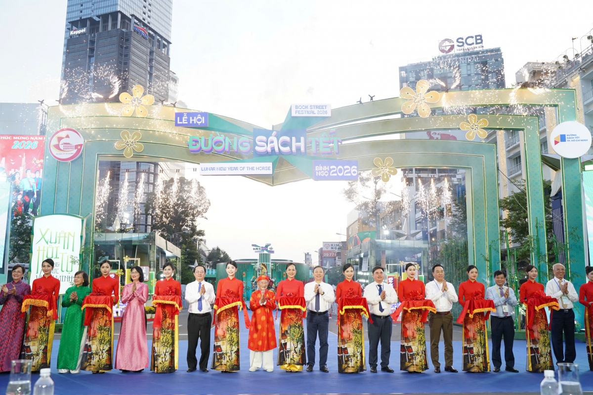Chiều 15/2, tại giao lộ Lê Lợi - Nguyễn Huệ (phường Sài Gòn), Lễ hội Đường sách Tết Bính Ngọ 2026 với chủ đề “Xuân hội tụ - Vững bước vươn mình” chính thức khai mạc. Lần đầu tiên, Lễ hội Đường sách Tết Bính Ngọ 2026 được triển khai đồng bộ tại 3 địa điểm: tuyến đường Lê Lợi (phường Sài Gòn), Công viên Thành phố mới (phường Bình Dương), Nhà Truyền thống Cách mạng (phường Vũng Tàu).