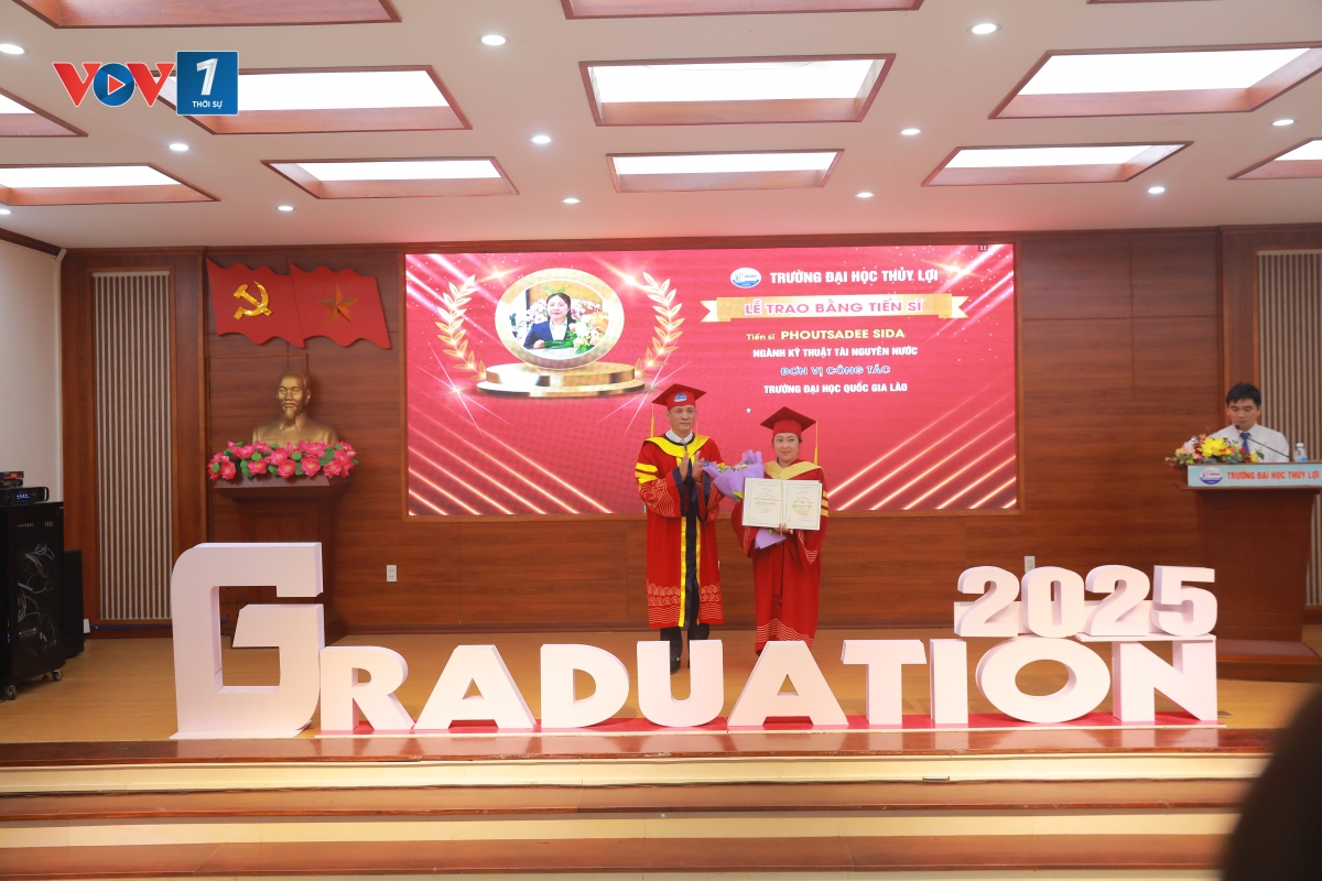 Trong số 8 tiến sĩ được công nhận đợt này có 4 nghiên cứu sinh của Trường Đại học Thủy lợi, đặc biệt có một tân tiến sĩ người Lào, đến từ Trường ĐH Quốc gia Lào, có truyền thống gia đình học tại Trường Đại học Thủy lợi.