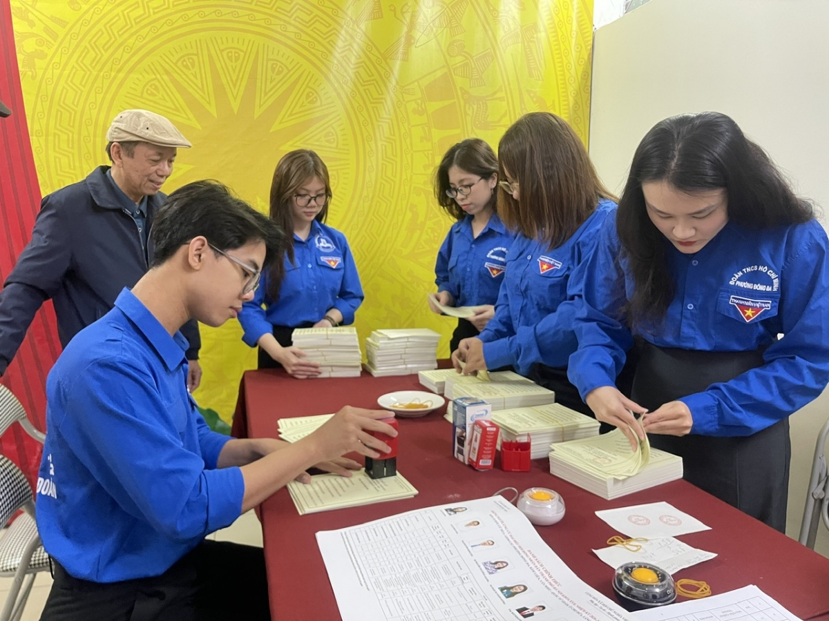 Chị Hoàng Minh Ánh, Bí thư Chi đoàn 58, phường Đống Đa chia sẻ: "Đoàn viên thanh niên chúng tôi hỗ trợ tổ bầu cử trang trí, treo băng rôn tuyên truyền tại điểm bầu cử, hỗ trợ đóng dấu phiếu bầu, sắp xếp phân loại thẻ cử tri. Qua hoạt động này giúp tôi hiểu hơn ý nghĩa của ngày bầu cử và trách nhiệm của mỗi công dân đối với đất nước"
