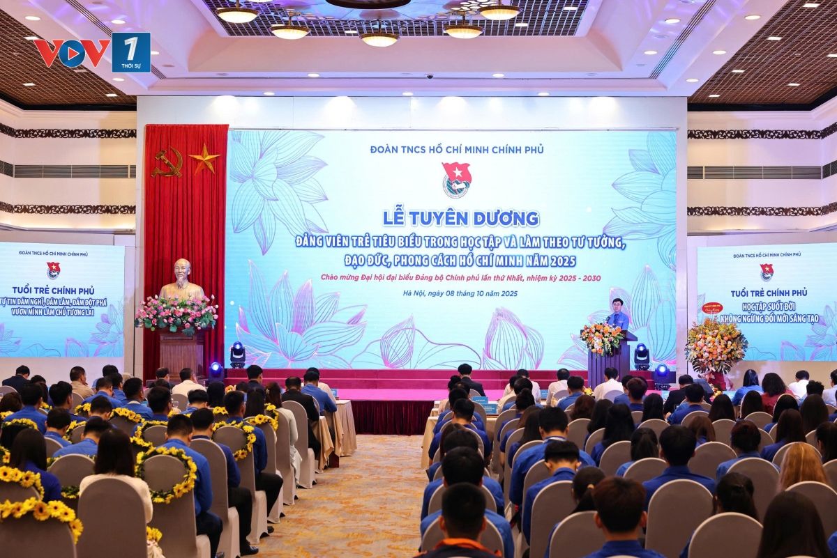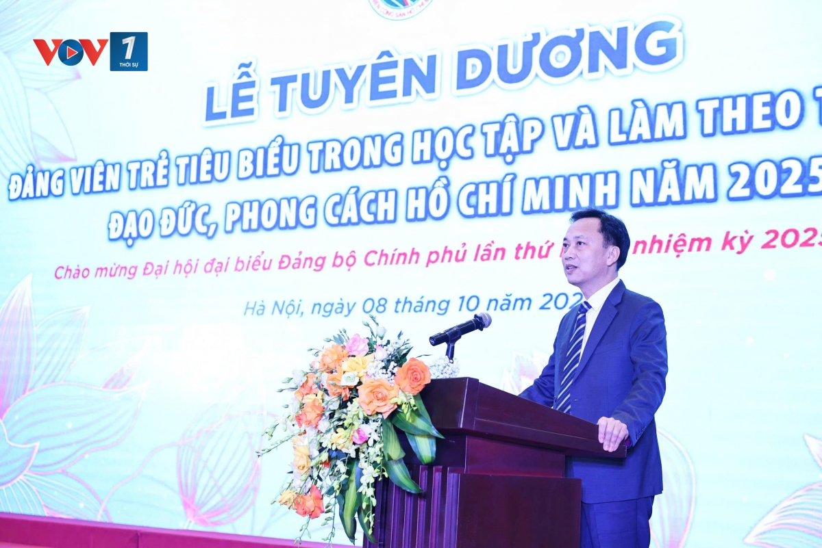 Chào mừng Đại hội đại biểu Đảng bộ Chính phủ lần thứ nhất, nhiệm kỳ 2025-2030 sắp diễn ra, sáng 08/10, tại Hà Nội, Ban Thường vụ Đoàn Thanh niên cộng sản Hồ Chí Minh Chính phủ tổ chức Lễ tuyên dương Đảng viên trẻ tiêu biểu trong học tập và làm theo tư tưởng đạo đức phong cách Hồ Chí Minh năm 2025. Tới dự có đồng chí Lại Xuân Lâm, Phó Bí thư Đảng ủy Chính phủ.