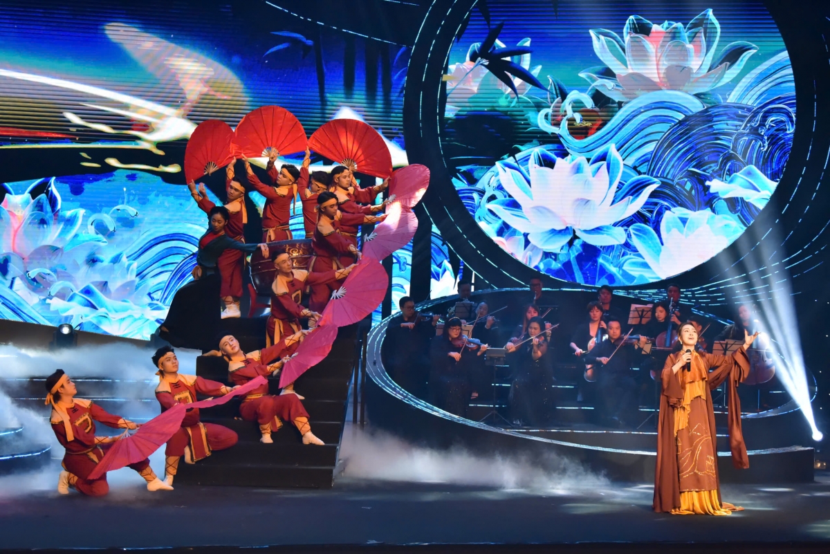 Điểm nhấn đặc biệt của chương trình là phần trình diễn các tác phẩm tiêu biểu đạt giải, được lựa chọn từ Cuộc vận động sáng tác ca khúc, bài dân ca đặt lời mới và Cuộc thi sáng tác thơ “Với Đảng vẹn toàn niềm tin yêu”. Các tác phẩm được dàn dựng công phu và lần đầu tiên ra mắt công chúng trong không gian Nhà hát Hồ Gươm. Với kết cấu gồm ba chương, chương trình nghệ thuật mang đến nhiều cung bậc cảm xúc cho khán giả, mãn nhãn cả về phần nghe và phần nhìn. Chương I – “Lời đất nước” gồm các ca khúc “Đất nước lời ru”, Mashup: Thư pháp- Tiếng Việt”, liên khúc dân ca: Ing lả ơi, Lý cây bông, Cò lả- Dân ta hát dân ca…đưa khán giả trở về cội nguồn với những câu hát ru, làn điệu dân ca, giai điệu truyền thống.